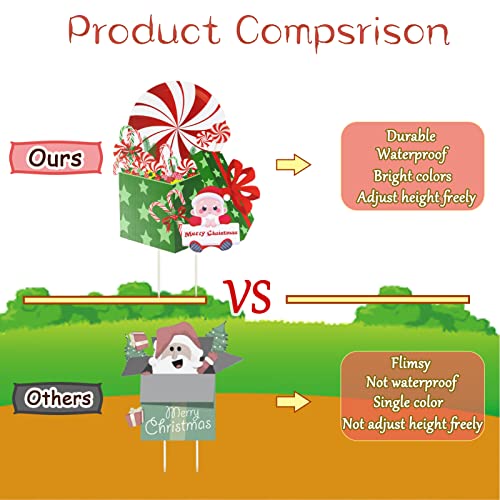 - 🍭【Fun Christmas Decor】The Christmas candy outdoor signs are a sweet addition to your outside holiday decorations, feel free to place them on lawn, front yards, gardens, pathway, doorway, walkway, etc to add more Christmas atmosphere at once; They’re perfect for grinches or gnomes themed outdoor Christmas decorations, candyland themed Christmas yard decor, new year party, photo props or backdrops and more