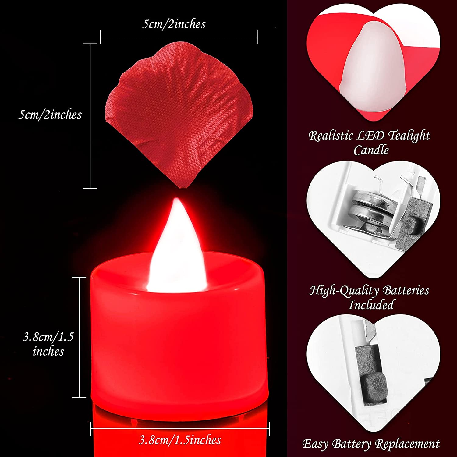 - Size details: each scatter petal measures about 2 x 2 inches/ 5 x 5 cm, similar size to real flowers; LED candles is approximately 3.8 cm/ 1.5 inches in diameter; You can use them to decorate everywhere you like