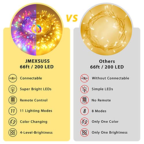 - 🎄【Bright & Warm Christmas Lights】The 66ft Christmas lights with 200 super quality LEDs. The warm white Christmas lights use ultra-high intensity LEDs for soft and bright lighting to create a delighted, joyful, unique atmosphere for Christmas, birthday, party, family dinner or wedding,indoors and outdoors.In addition, the Xmas lights with plug design greatly improves the stability of the bulb brightness. Light up the night with a warm glow and perfect to add ambiance.