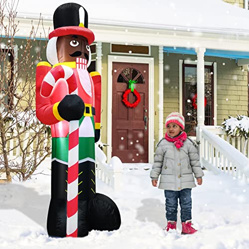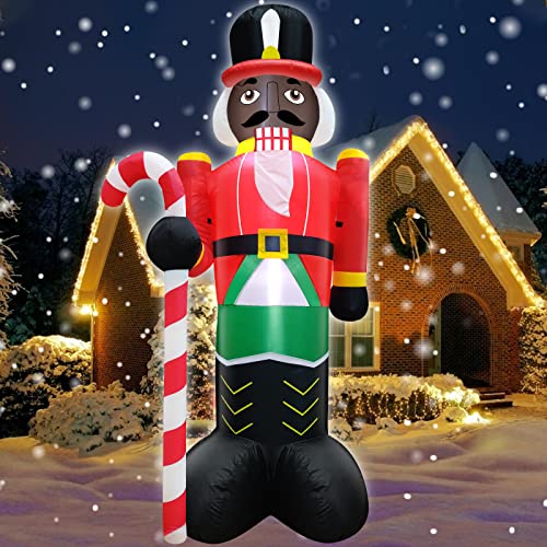 - [ 6 Ft Christmas Inflatable Black Nutcracker Decoration ] 6 Ft Tall Christmas Black Nutcracker Inflatable decor holds a Christmas candy cane. You will receive a 6Ft inflatable, 4 plastic ground stakes, 2pcs 6.6Ft tethers, 1 weight bag, 1 plug, and built-in blower.
