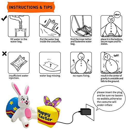 - 【Simple Setup And Storage】:Self-inflates and deflates,Just plug in this easter inflatable built-in fan and fix it on the ground. It will be inflated in a few seconds and everything pops up in an instant!For better stability,built-in water bag and rope,Don't worry about whether this inflatable decoration will be blown away by the wind.