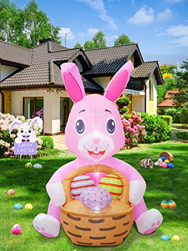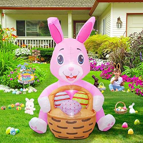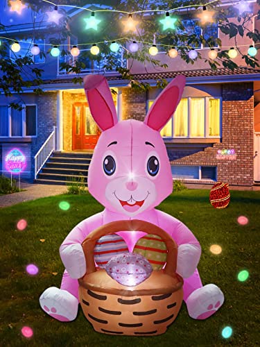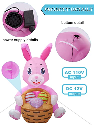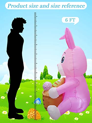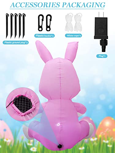 6FT Easter Inflatables Pink Bunny Outdoor Decor w/ Build-in LED Light