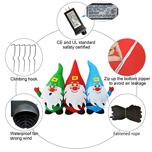 - 🎉【Perfect Size & Components】The size of 7 FT Christmas inflatable is perfect for outdoor or indoor use. No worries about if this inflatable might fly away by the wind. Beside blower and storage bag, we providing ropes to secure it on the ground. Moreover, zip up the bottom zipper to avoid air leakage, otherwise, open the zipper for fast deflate.