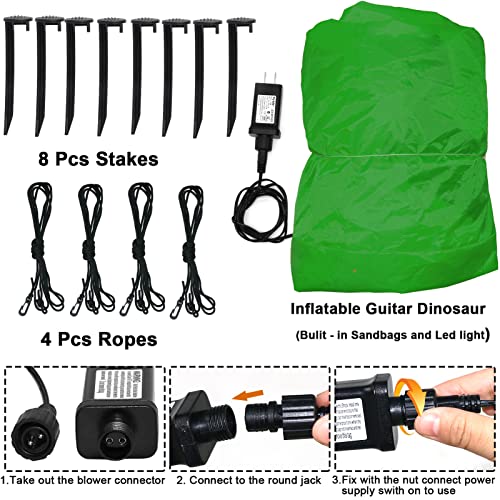 - EYE-CATCHING LED LIGHT: Built-in bright LED lights light up the yard festively, the colored inflatable dinosaur makes your yard a big hit around neighbors and attracts the kids.