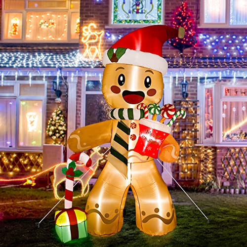 - ✨The inflatable gingerbread man is 8ft in height, 5.5 ft wide, huge, and durable enough, with built-in 8 multiple ultra-bright pure-white LEDs, to stand out even on the darkest night. Simple and courageous gingerbread men, Say hello with gifts and candy canes, decorated in the yard, to represent good wishes.