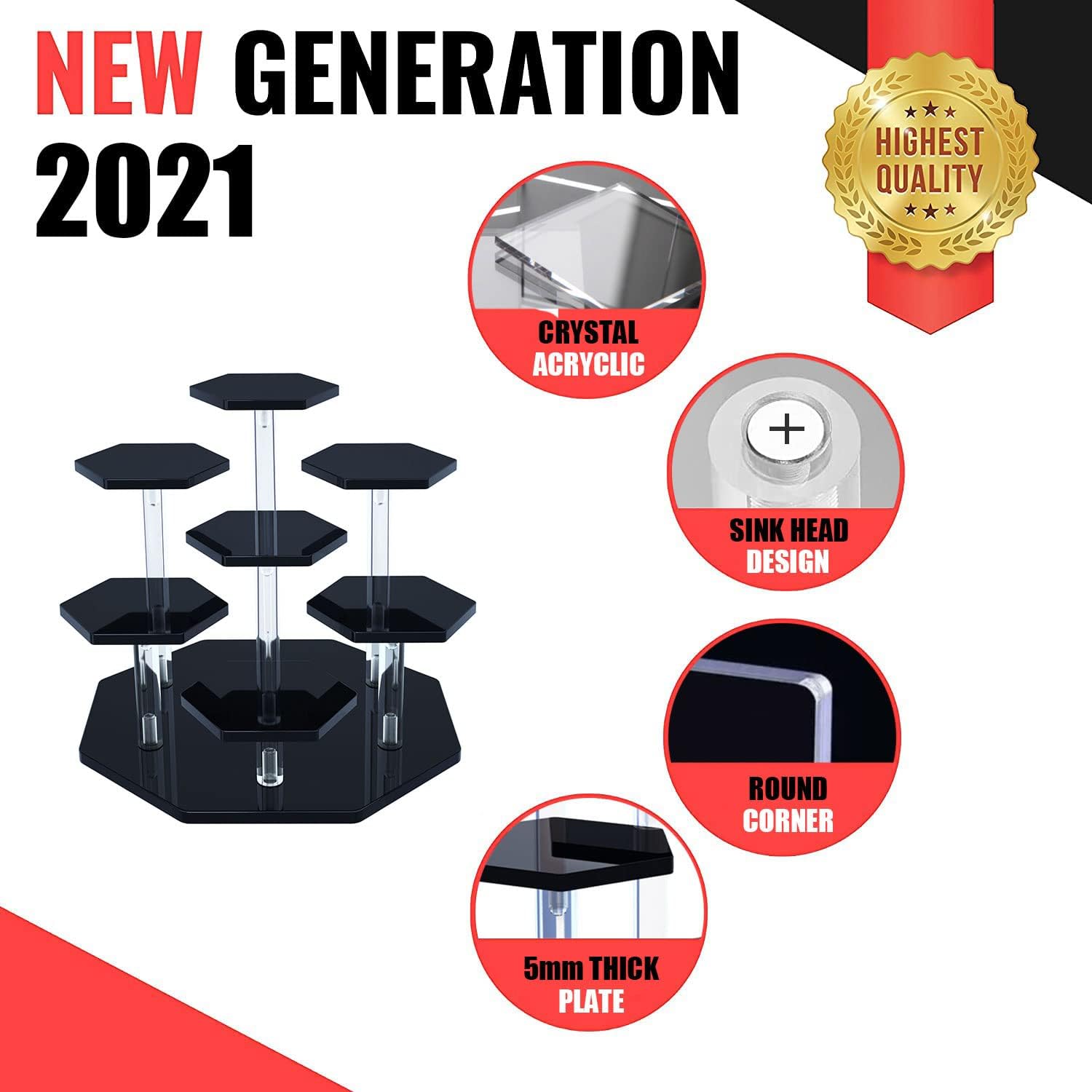Acrylic Display Stand for Figures, Collectibles, Toys and Dolls, Jewelry, Action Figures Collection Organizer Holder, Collectibles Stand, Cosmetic Items Risers, 7-Tier. (Black)