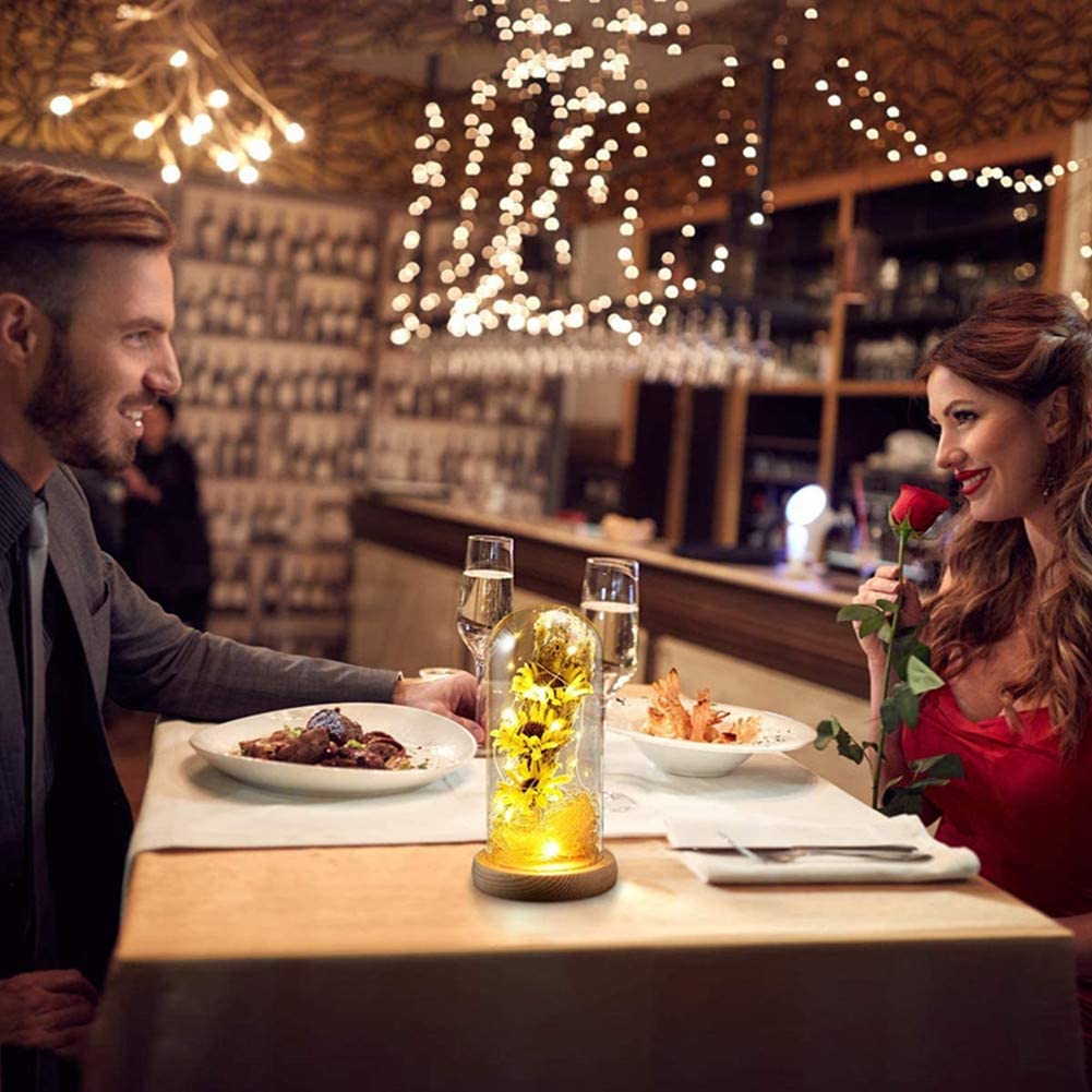 Artificial Sunflower in Glass Dome Gifts for Women w/ LED Lights