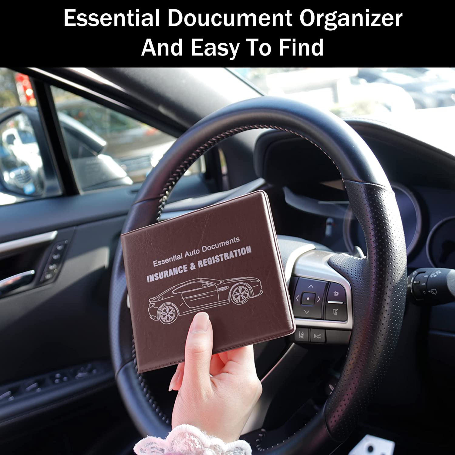 Auto Car Essential, Car Registration and Insurance Card Documents Holder 2-Pack,Car Interior Accessories for Car,Truck,SUV and Other Vehicle (Brown)
