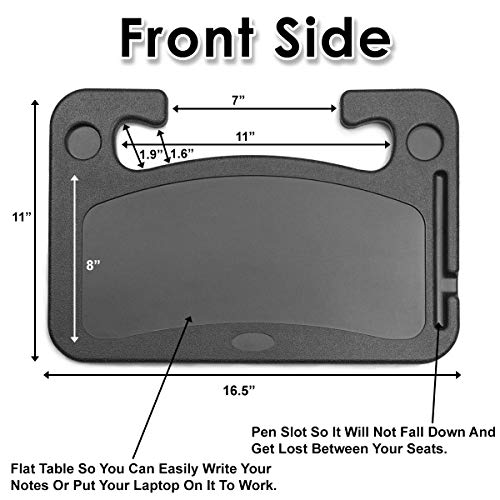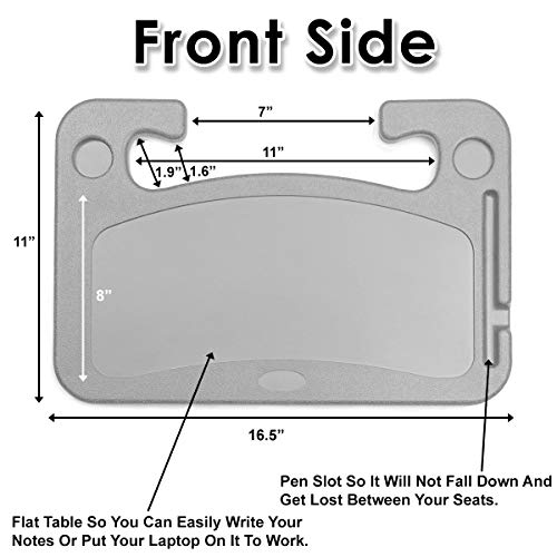 • ✓ Our Multipurpose Car Steering Wheel Table Organizer is sturdy enough to support a tablet, notebook and even a laptop or a full lunch with drinks. The Tray Is Measuring 16.5” x 11” x 1”. It’s Made to A Very High Standard, Which Gives This Tray A Good Look And A Super Long Life.