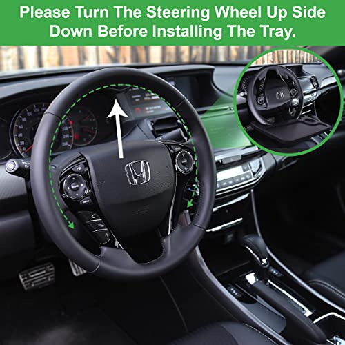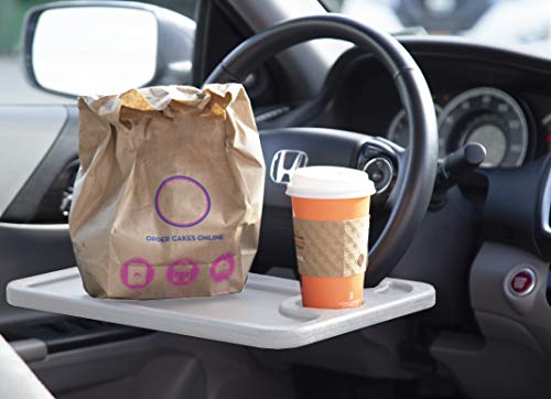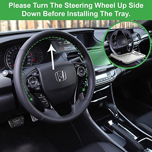 • ✓ Our Multipurpose Portable Auto Travel Tray is designed to fit most vehicles' steering wheels, besides for one that has a cover. It’s Simple And Easy To Install And Very Easy to Keep Clean. It is important to turn your steering wheel upside down before attaching the tray, so it should have a snug fit. The tray is recommended for sales people that are constantly traveling, It’s the perfect travel gift.