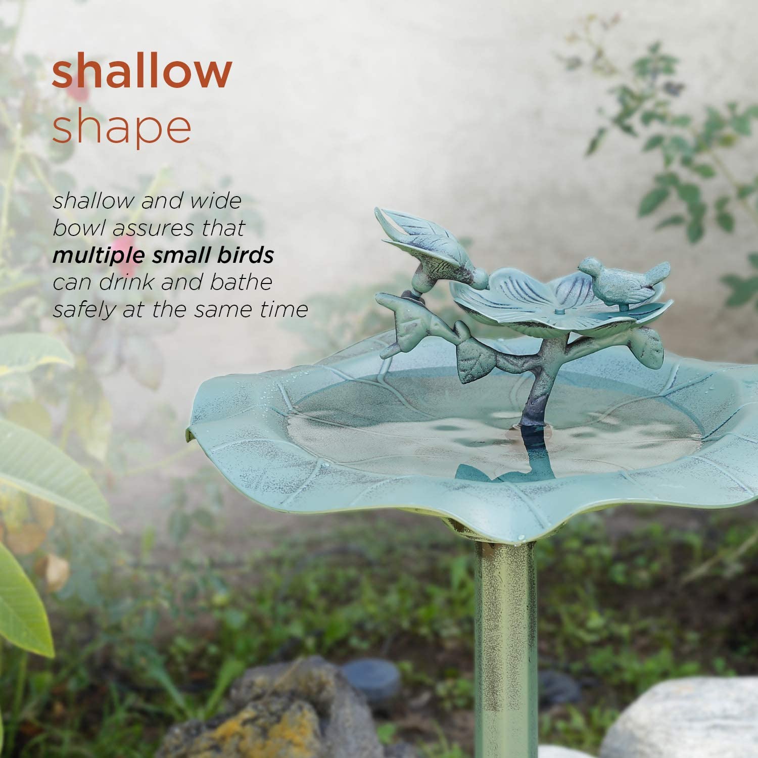 Birdbath Yard Statue, 20" L x 20" W x 33" H, Green & TEC114 Antique Flower Birdbath, 20" L x 20" W x 31" H, Green