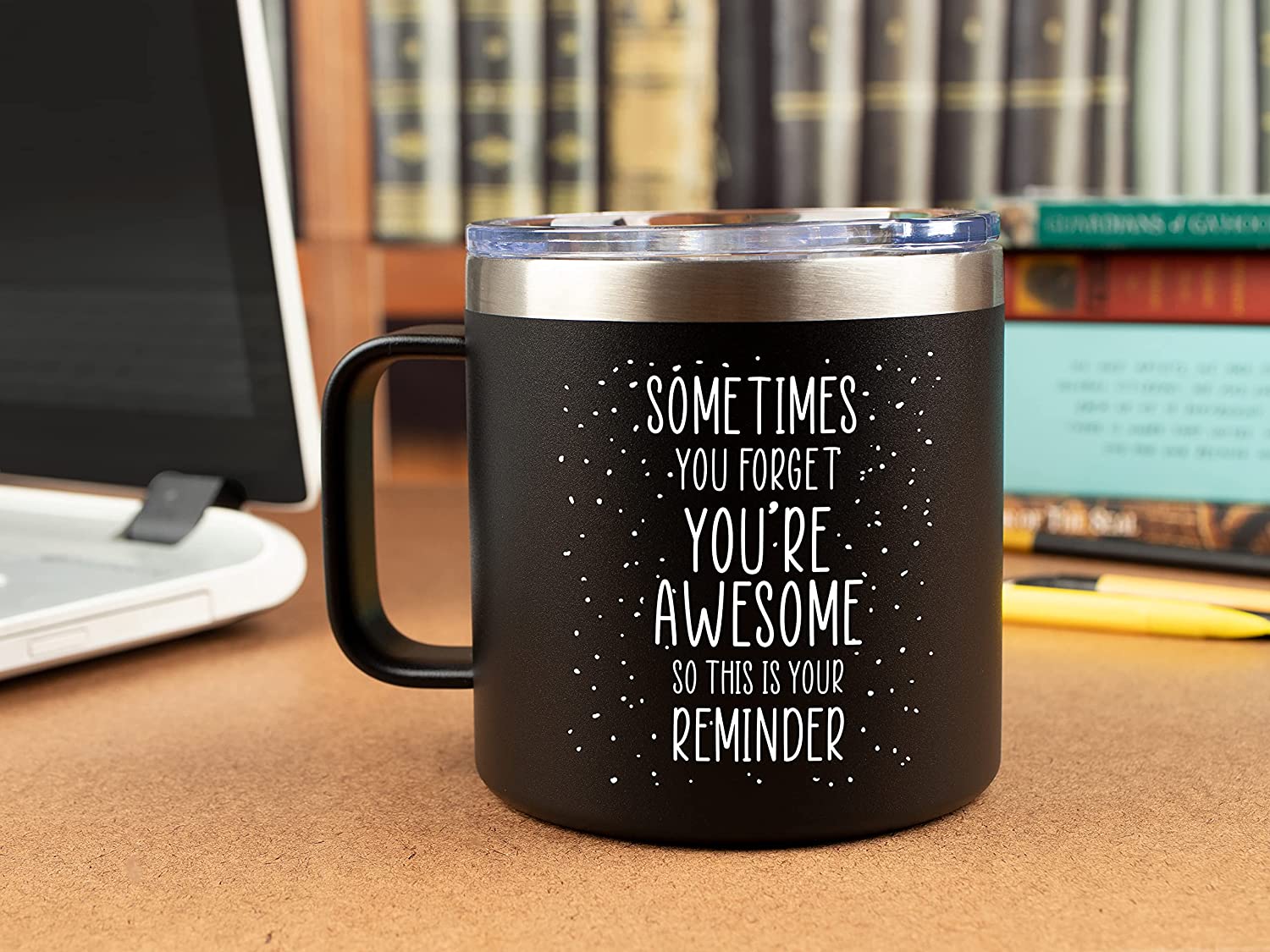 - Inspirational Gifts for Men- Stainless Steel Coffee Mug/Tumbler 14oz – “Sometimes You Forget You’re Awesome” Funny Gift Idea for Employee, Coworker, Motivational, Best Friend, Teacher