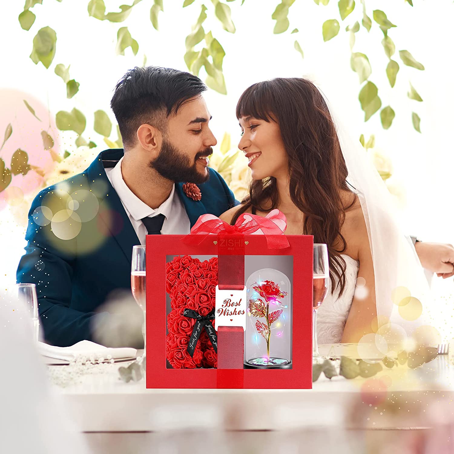 - ❤Best Gifts for women:High-end custom gift boxes, elegant design, compared to ordinary gift boxes, can better express your mind.There are also gifts full of love in the box,Lovely hand-made Rose Bear, Beautiful Love Necklace and Glass Dome LED Gold Foil Rose Lamp,Each of them represents your love and is doubled,Glass Dome LED Gold Foil Rose Lamp powered by 3 AAA power supply (not included), the LED strip has bright warm white light,decorate the room or create a romantic atmosphere,The color of the rose in the glass dome changes with different angles and light . LED Gold Foil Rose Lamp decorate our bedroom or office to create a Good atmosphere.