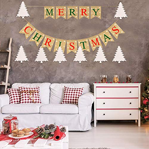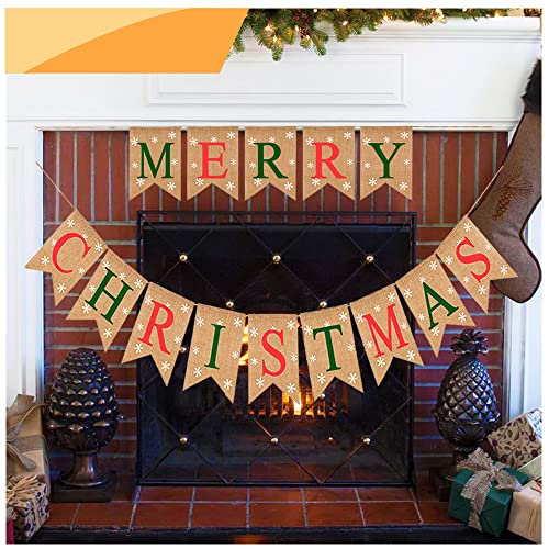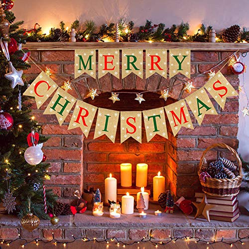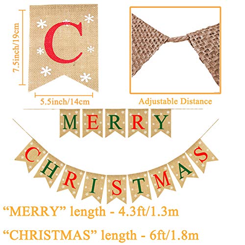 - ❤MERRY CHRISTMAS! Our Merry Christmas banner burlap with snowflakes on each flag, which impressive the Christmas decorations for your party