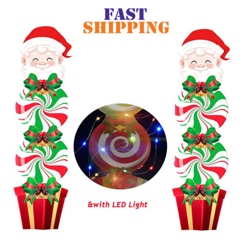 Appropriate size: the total size of this product are approx. 54 x 11.34 inches/ 137 x 28.8 cm in length and width, the head of Santa is approx. 14 inches/ 36 cm x 11.22 inches/ 28.5 cm; 2 pieces candy bow is 12.64 inches/ 32 cm x 12 inches/30 cm; Bow gift box is 12 inches/ 30 cm x 12 inches/ 30 cm, 2 pieces 11 inches/ 28 cm stakes and 6 pieces 11 inches/ 23 cm stakes