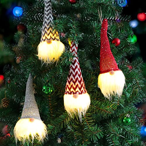 - 【SET&HANGING 】Set of 4 gnomes are in the same size. It is 9.5 inches high from the bottom to the hat top and 3 inches wide. 3.5 inches of rope attached helps for hanging tables, bookshelves, mantelpieces, or hanging on Christmas trees or shelves.