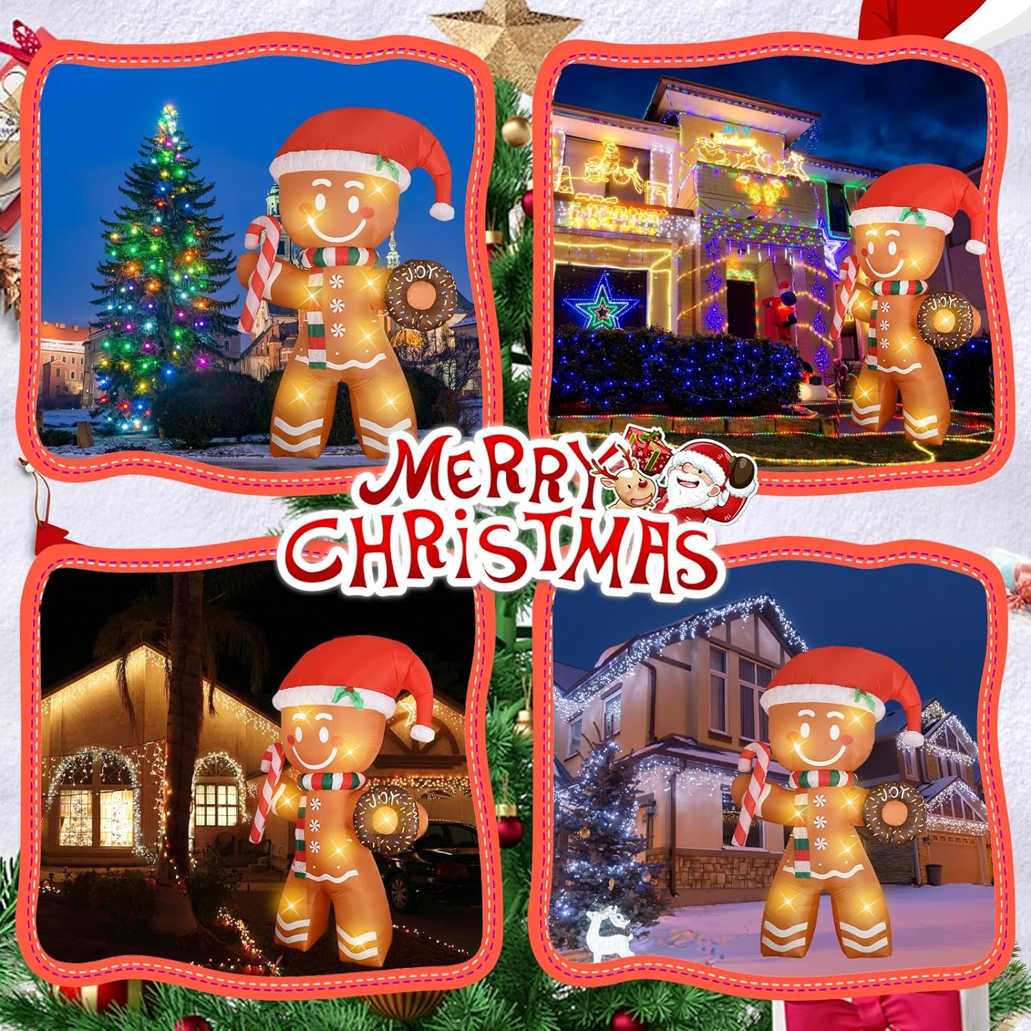 - nique Christmas Inflatables Outdoor Decorations: Gingerbread Man Inflatable is ideal Christmas blow up yard decorations.Dressed in a red Santa hat and holding candy canes and doughnuts, the 8FT Christmas inflatable gingerbread man happily waves to everyone passing by and become the focus of the festival