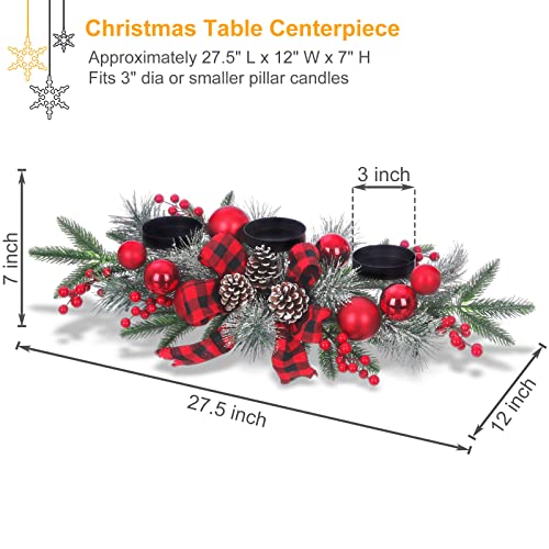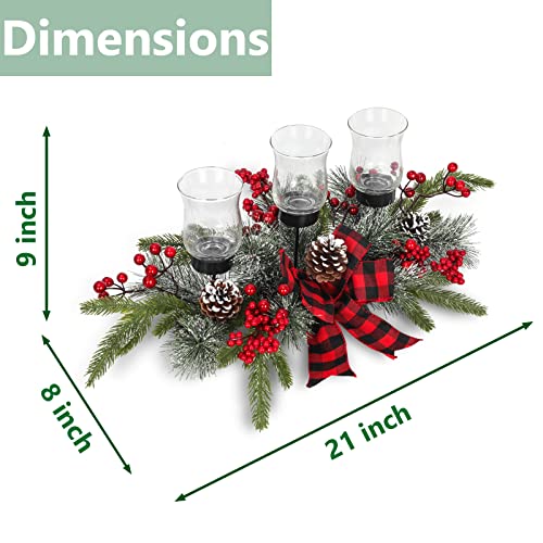 - 【Christmas Centerpiece Dimension】Each glass hurricane shade Christmas centerpieces measures approximately 3" diameter x 4" high which fits 2" dia or smaller pillar candles and tealights (not included). The dimension of whole Christmas table centerpieces is approximately 21" L x 8" W x 9" H, and it is Perfect to add a little low lighting to your Christmas celebrations.