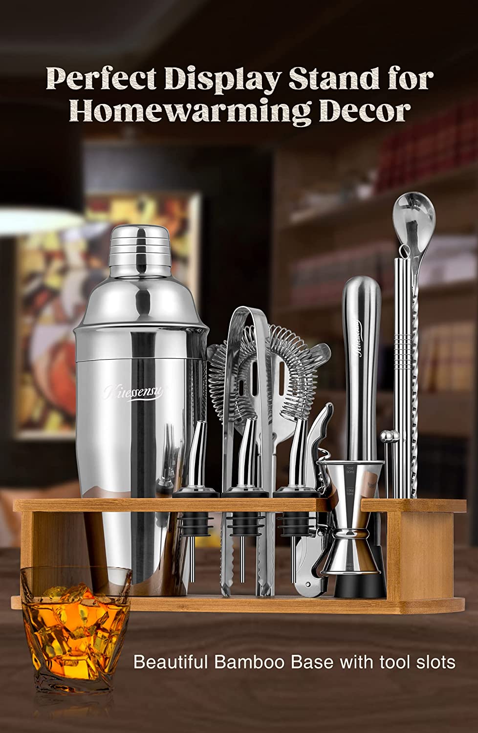 - Raise The Atmosphere: The bartenders will benefit from a stand, allowing you to keep your bar kit set organized and also on full display, and you will find the contrast between wood and stainless steel makes a wonderful statement on the kitchen counter, but this is not a case of style over substance. with the right cocktail tools, you can easily bring the cocktail bar experience into your home