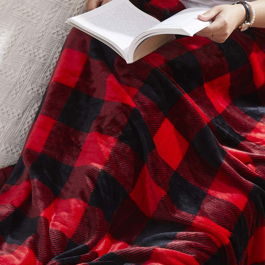 SUPER SOFT & DURABLE CONSTRUCTION: This red plaid throws blanket is made using double-sided 100% premium microfiber polyester that is super soft, plush, and lightweight yet durable enough to provide you with long term use.