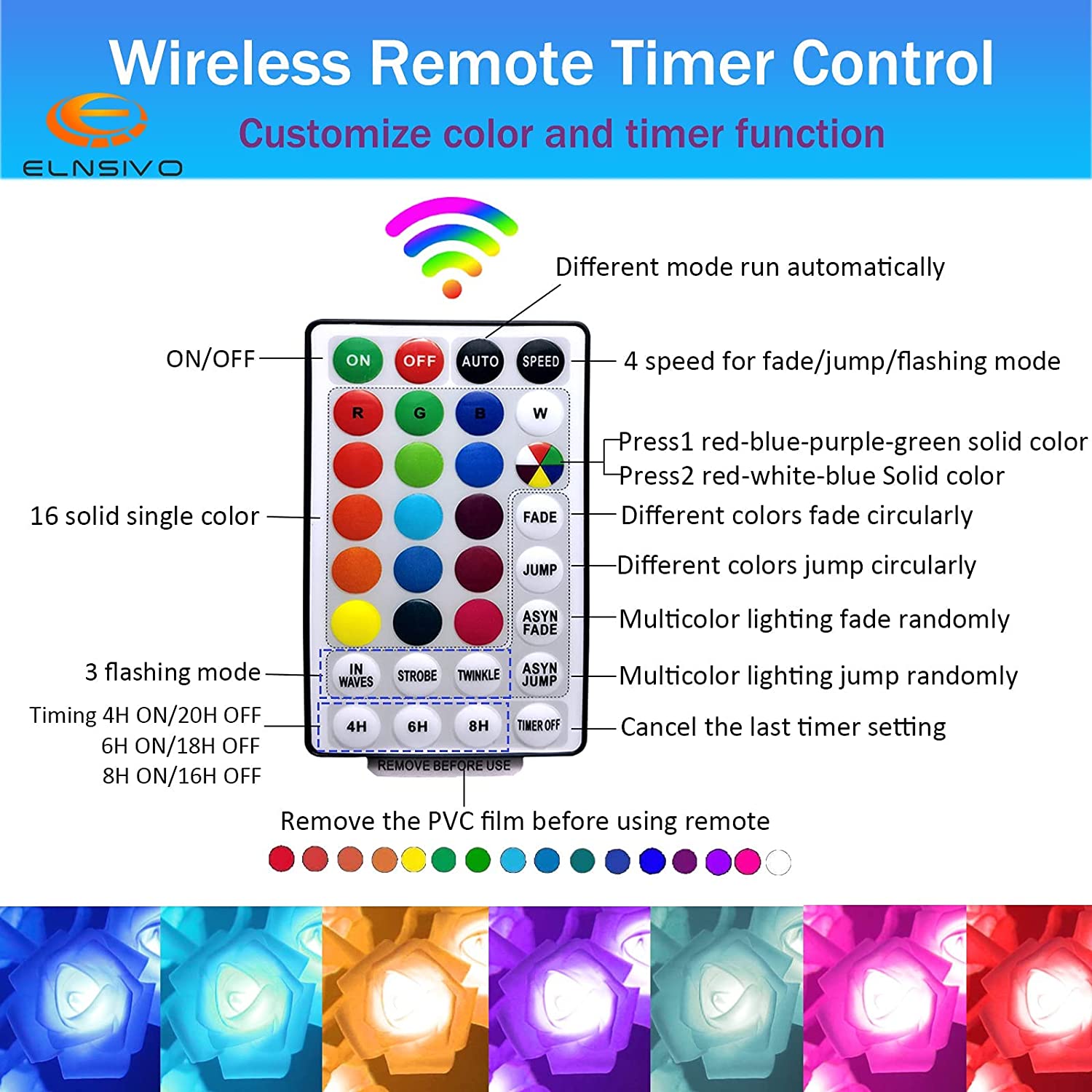 - 【18 Colors Changing with Remote】18 unique colors with steady-on modes plus 7 lighting modes for more options, just a simple click, you will get a gorgeous decor effect. Add a speed function for you to choose your favorite speed in 7 lighting modes. 3 style timer mode for your choose:4H/6H/8H.