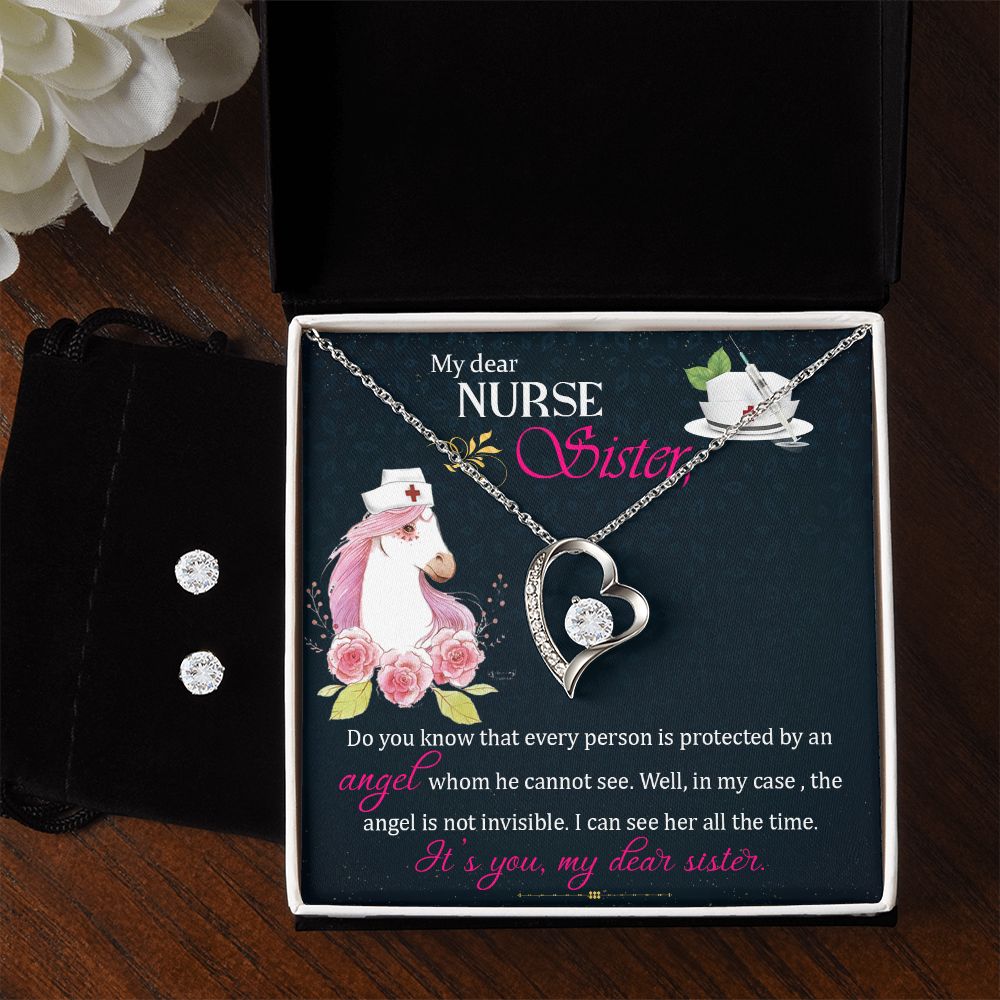 My dear nurse sister Forever Love Necklace and Cubic Zirconia Earring Set