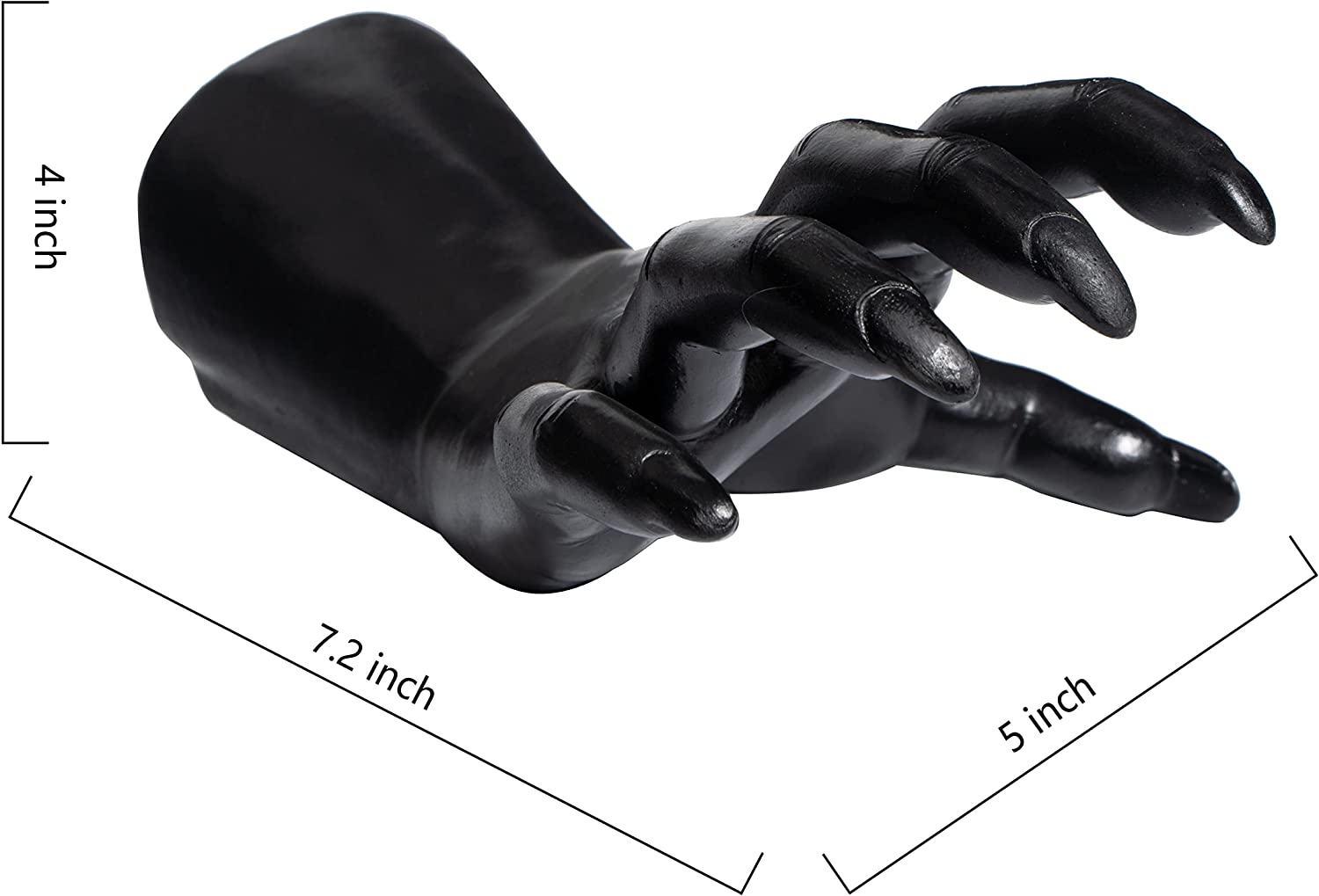 - This monster hand makes a great decoration! Measuring in at 7.2" Long x 5" Wide x 4" High, it's a decoration that every guest is sure to notice! Featuring precise detail on each finger, this glossy resin hand makes a fine decoration for a Living Room or Office!