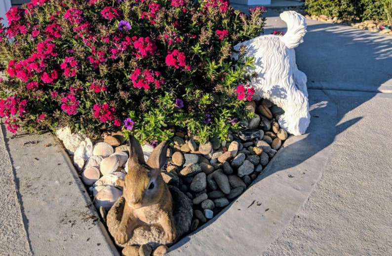 This little bunny is curious about what’s going on in your yard! Place this darling sculpture in your garden and delight in his realistic details, from his subtle coloring to his fine fur. The base looks like a freshly dug hole in your yard, but who can be angry at a face like that?! It's also a good animal collectibles on your console table, tabletop centerpiece would make a shelf of winter animals. Perfect Easter decors it's going on your kitchen table, poking out of a basket with colorful nesting material covering the "dirt". You won't be disappointed at all, and may end up ordering more to give as gifts. Fell in love with this little fellow at first sight! Put him in a very large pot holding a tree. He looks right at home. Kids always stopping by to take a look.