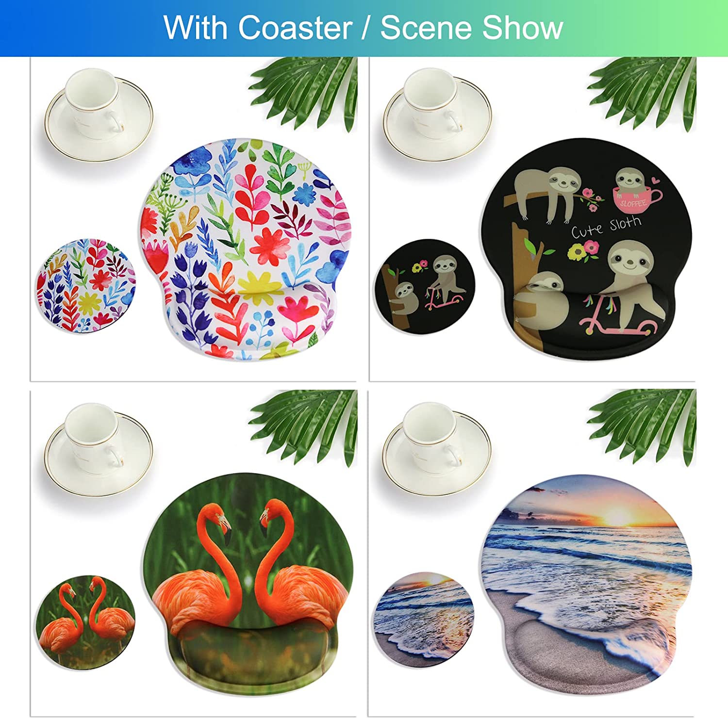 - 【Opitimal Size】Wrist mouse pad ( 9 x 9.9 inch)-which is upgraded 20% larger than usual, Coaster (3.95x3.95x0.16 inch) are designed with an optimal shape and size, fit for all kinds of mouse / keyboard, compatible with Computer / iMac / Laptop.