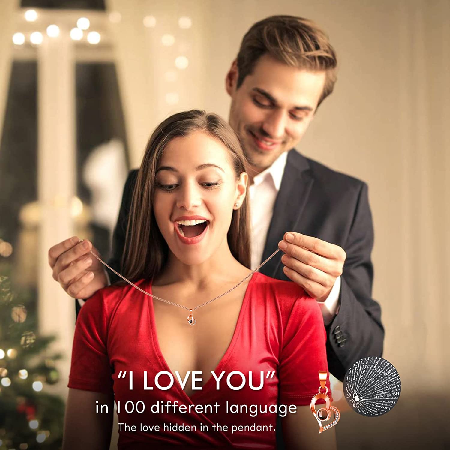- I Love You Necklace- The drawer with I love you necklace in 100 languages. Unique rose gold color specially designed for women, contains no lead and nickel, exquisite and elegant. This love necklace uses the latest nano projection technology to engrave "I love you" in 100 different languages on the love stone. Chain 16 inches + 2 inches extension. It's the perfect gift for a wife or girlfriend. Show her how much you love her and make her fall in love all over again.