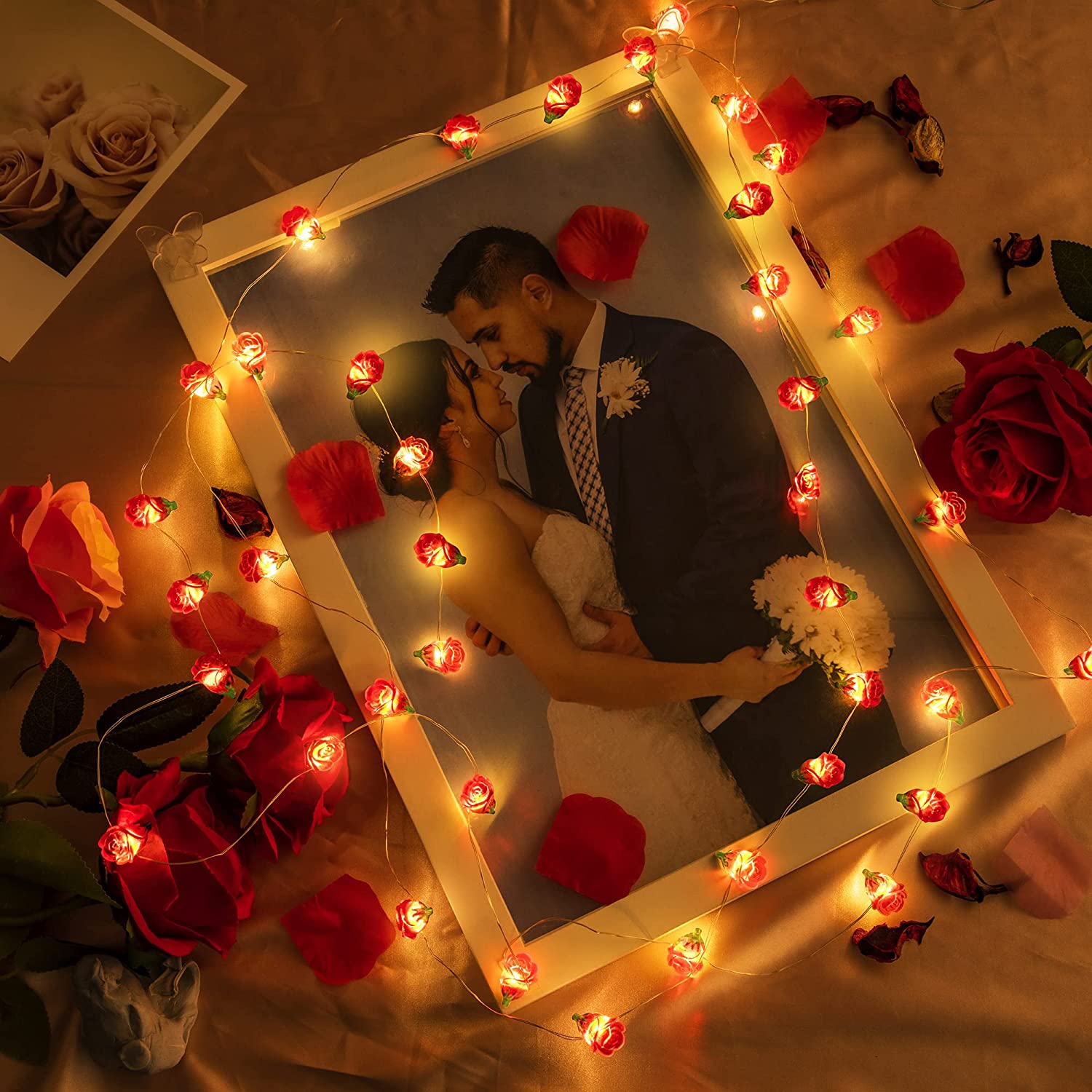 - 🌹【Romantic Valentine Decorations】the lovely Valentine's Day light string is inlaid with 30 red rose LEDs on the copper wire; Red rose means love and romance, you can hang it in your bedroom, creating a romantic and harmonious atmosphere