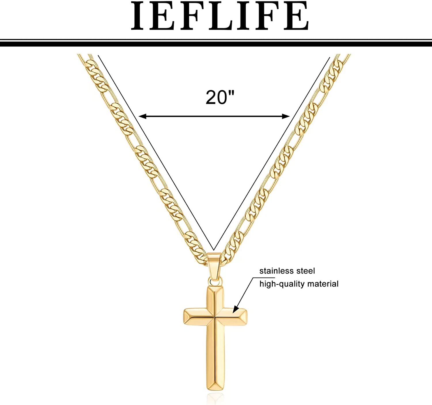 - FIGARO CHAIN: The chain width is 0.2"(5mm), and the length is 20 inches. Cross necklace is comfortable to wear and cross pendant combines perfectly with other necklaces. Perfect gifts for men or boys.