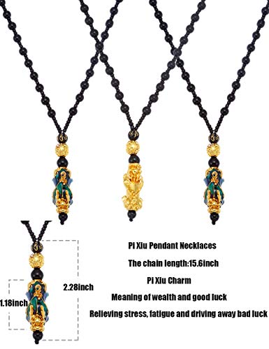 - 🤞Pi xiu Bracelet Necklace Set : Lucky pi xiu jewelry set,you will get 3 pieces feng shui pixiu bracelets and 3 pieces pi xiu pendant necklace. Amulet bracelets and necklaces,which can bring you health, good luck and make you feel safer and in good mood.