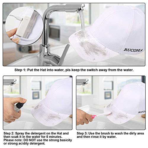 • The LED hat can be gently hand washed (scrub only, can not knead and twist ) with water up to 50 degree centigrade or natural soap, but the battery box must be taken off or keep away from water before washing. Please take off the battery box and please keep the plug of wire away from water. This fabric must not be washed in washing machine. Dryer or iron is forbidden.( Hang dry only).