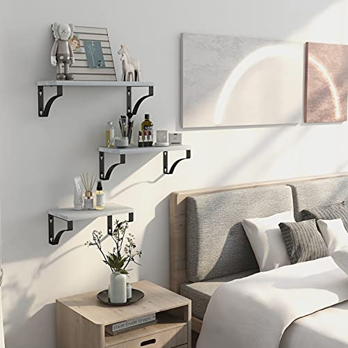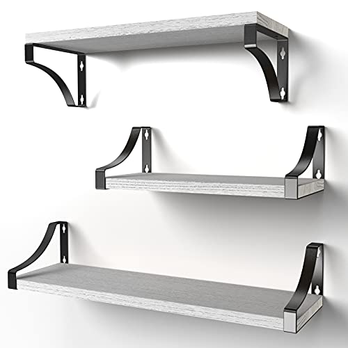 - Amada Floating Shelves Wall Mounted Set of 3, Rustic Wood Wall Shelves for Bedroom, Bathroom, Living Room, Kitchen, Laundry Room Storage & Decoration, White AMFS03W