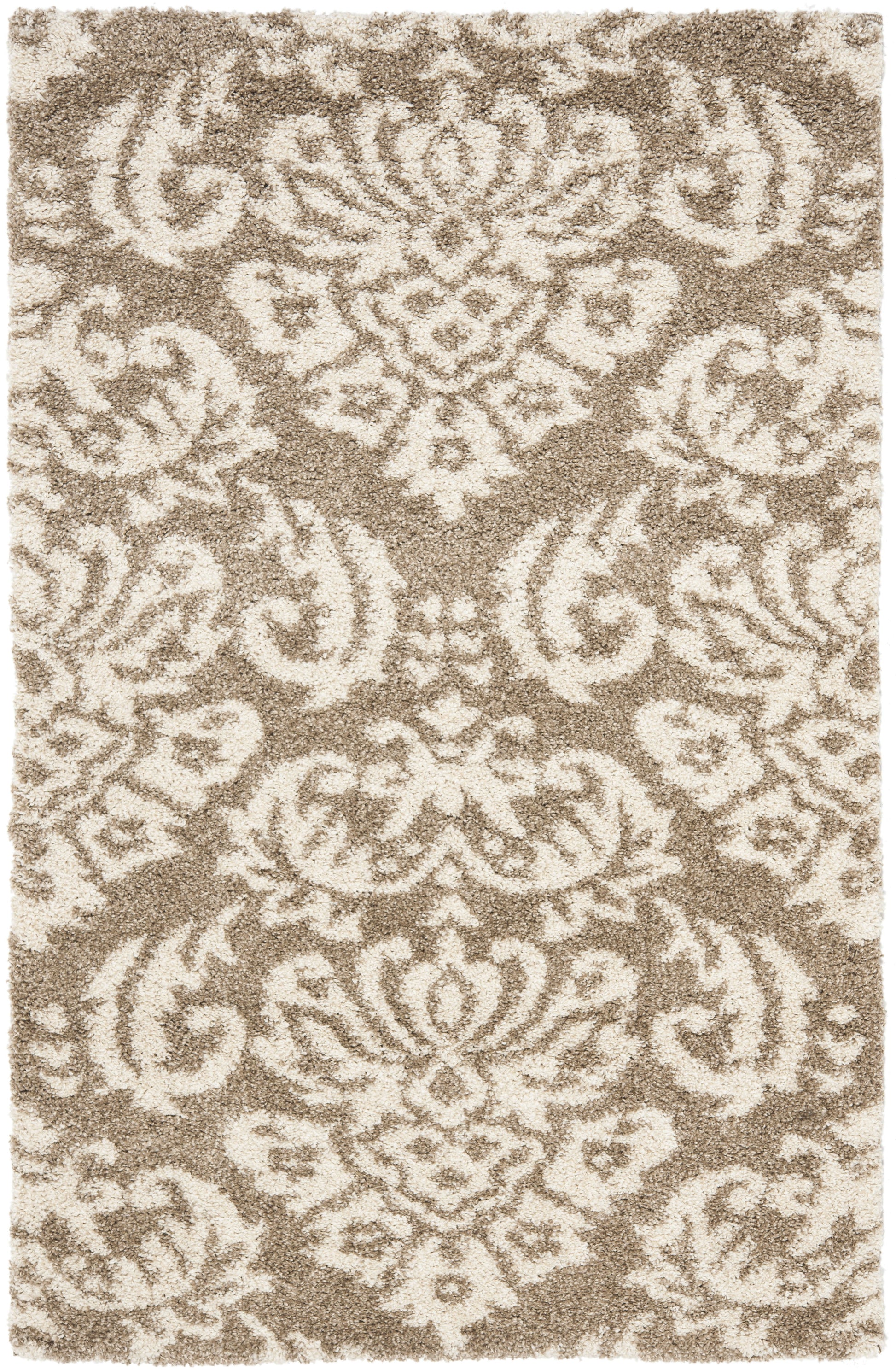 Florida Desmond Damask Plush Shag Area Rug, Beige/Cream, 3'3" x 5'3"