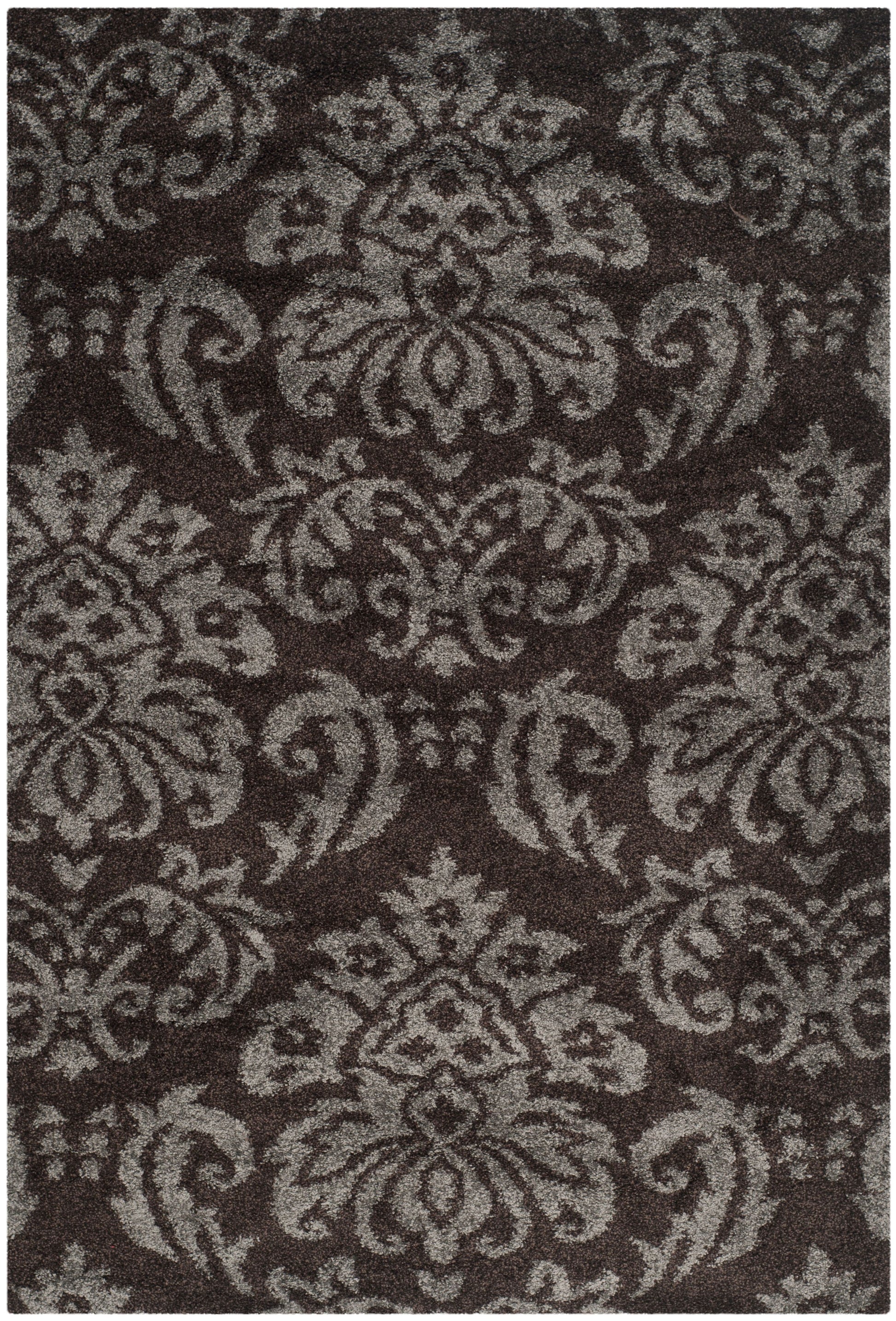 Florida Desmond Damask Plush Shag Area Rug, Dark Brown/Smoke, 3'3" x 5'3"
