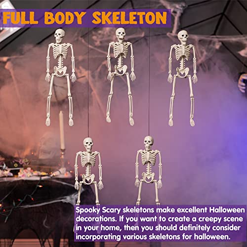 - SUPER VALUE PACK. This skeleton set comes in 5 packs measuring 16” each. The skeleton features movable joints for a realistic vibe on your Halloween decorations.