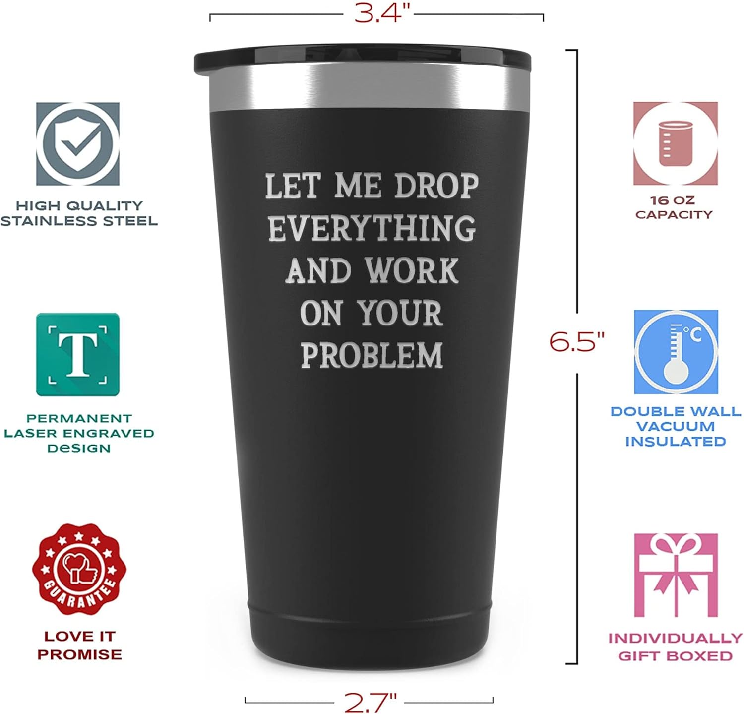 - Backed By Our 100% Love It Promise - We want to exceed your expectation and make sure that you will love our funny coffee tumbler. In the unlikely event you are not pleased with your purchase, please let us know right away so we can make it right