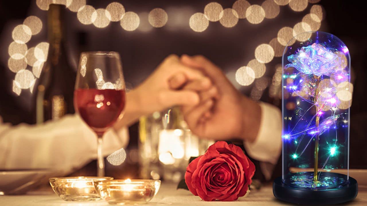 Galaxy Flower Rose Gift, Artificial Rose Flower LED Light String on Glass Colorful Flowers