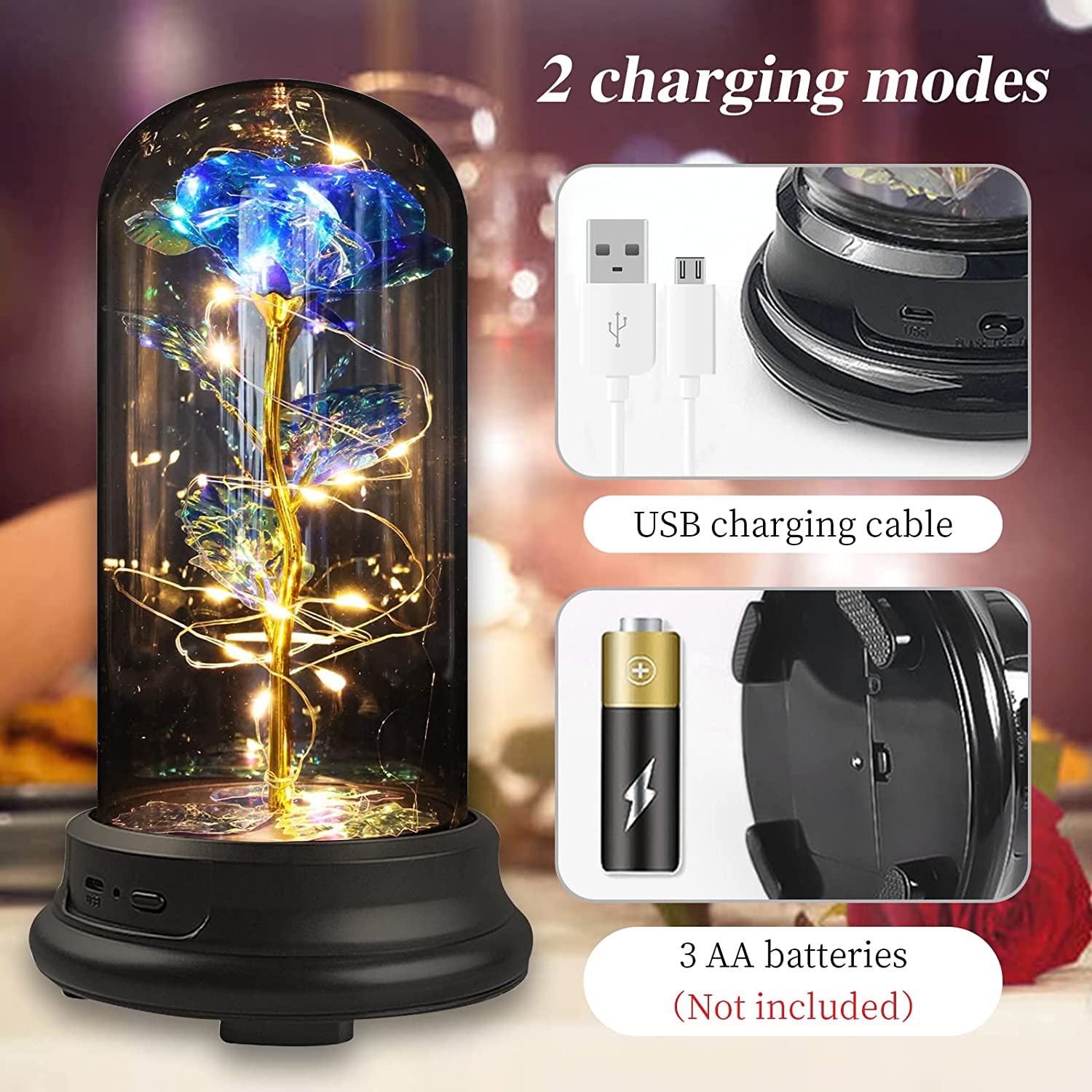 - 【Two Powered Ways】: Glass rose gift can be powered not only by 3 AA batteries (not included), but also by USB cable (USB cable included)