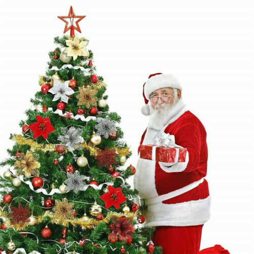 Glitter Christmas Poinsettia Hanging Flowers Xmas Party Tree Decoration