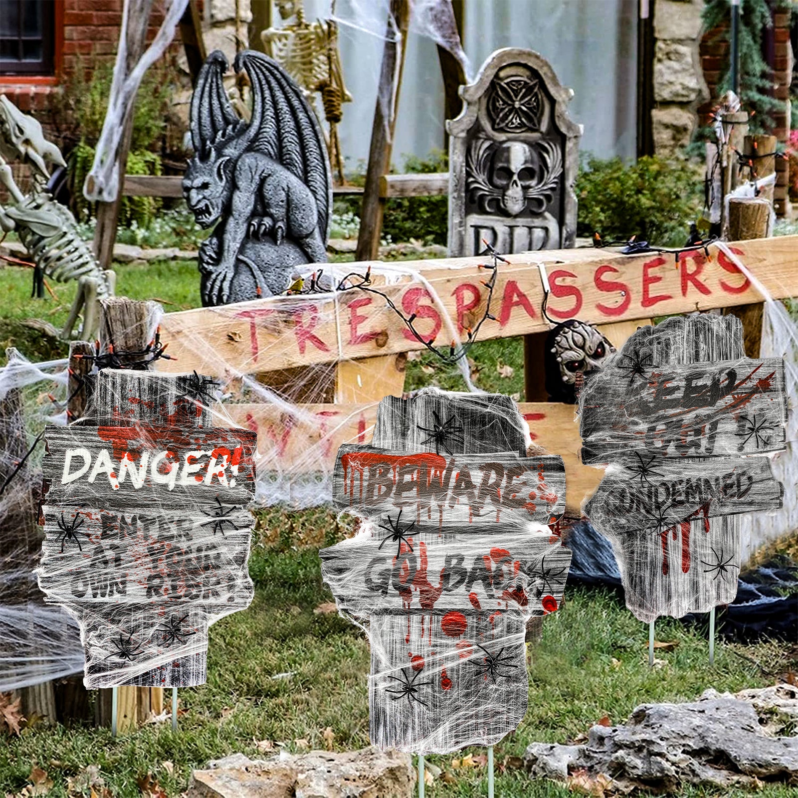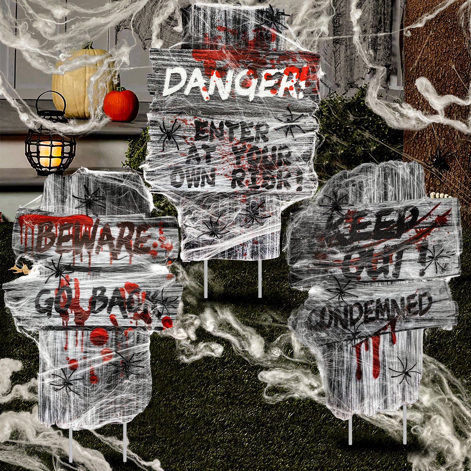 Halloween Outdoor Yard Signs Stakes w/ 20g Cobwebs & 18 Pcs Small Spider