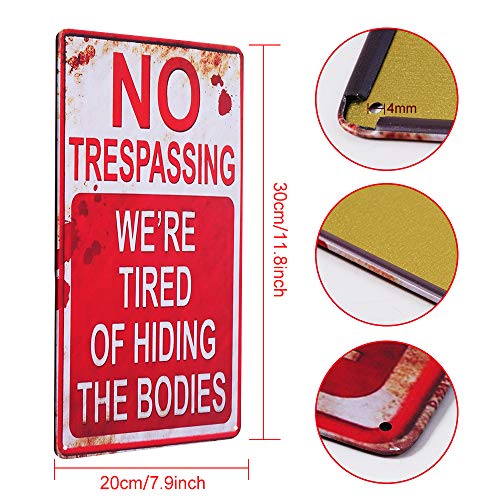 Halloween Signs Retro Fashion chic Funny Metal Tin Sign No Trespassing We're Tired of Hiding The Bodies.