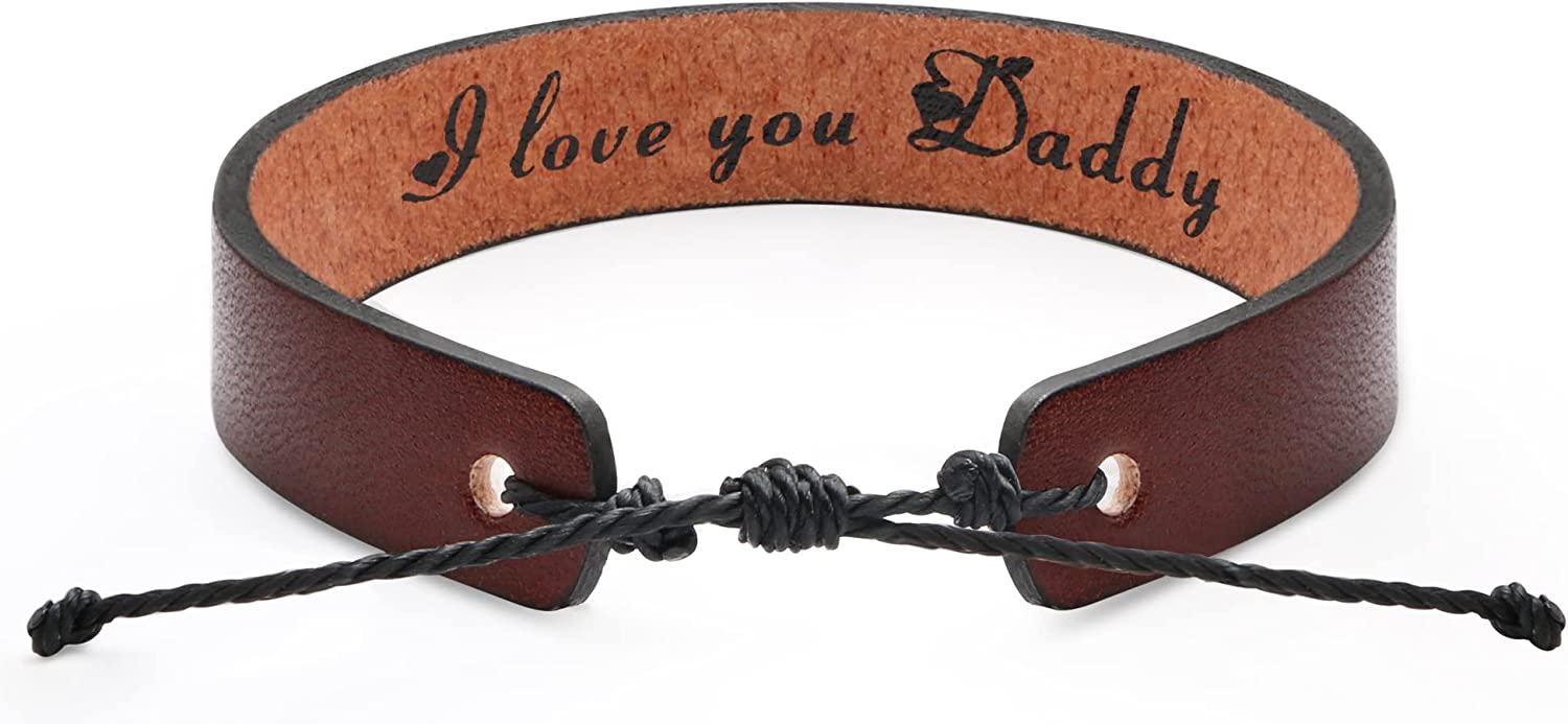 I love You Daddy Leather Bracelet for Men Sobriety Gifts for Men on Fathers Day