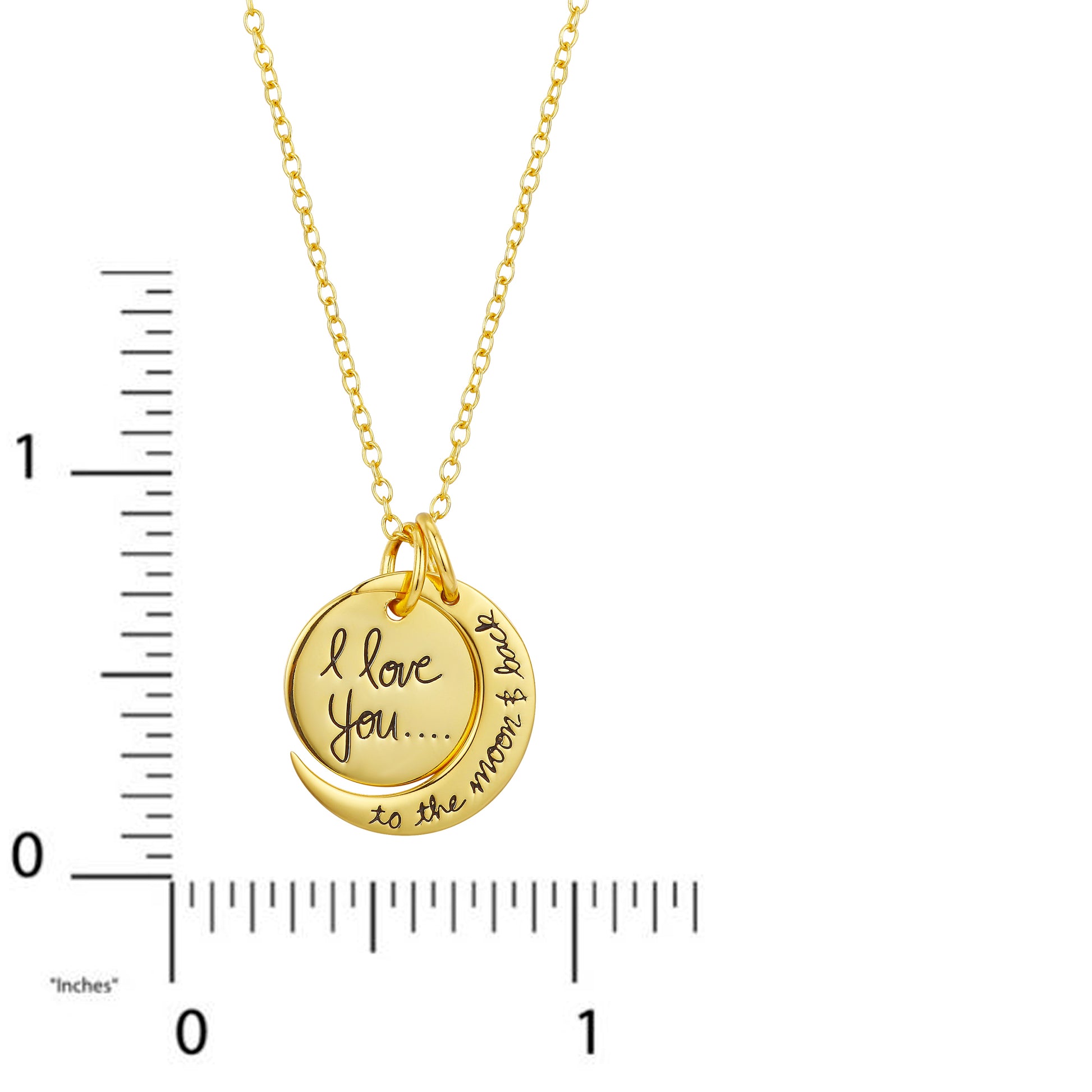 This dazzling necklace lets everyone know exactly how you feel. Sterling silver charm necklace reads "I Love You To The Moon and Back." Makes a sensational birthday, holiday, anniversary or anytime gift. *- Gold Flash Plated *- Sterling Silver : Gifts for Birthdays, Anniversary, Valentine's Day, Mother's Day, etc. *- Makes an elegant addition to your accessory collection *- D18" Gold Plated Sterling Silver Chain *- We work hard to make sure your items are unique and timeless for your most memorable occasions *- Perfect for gift giving *-