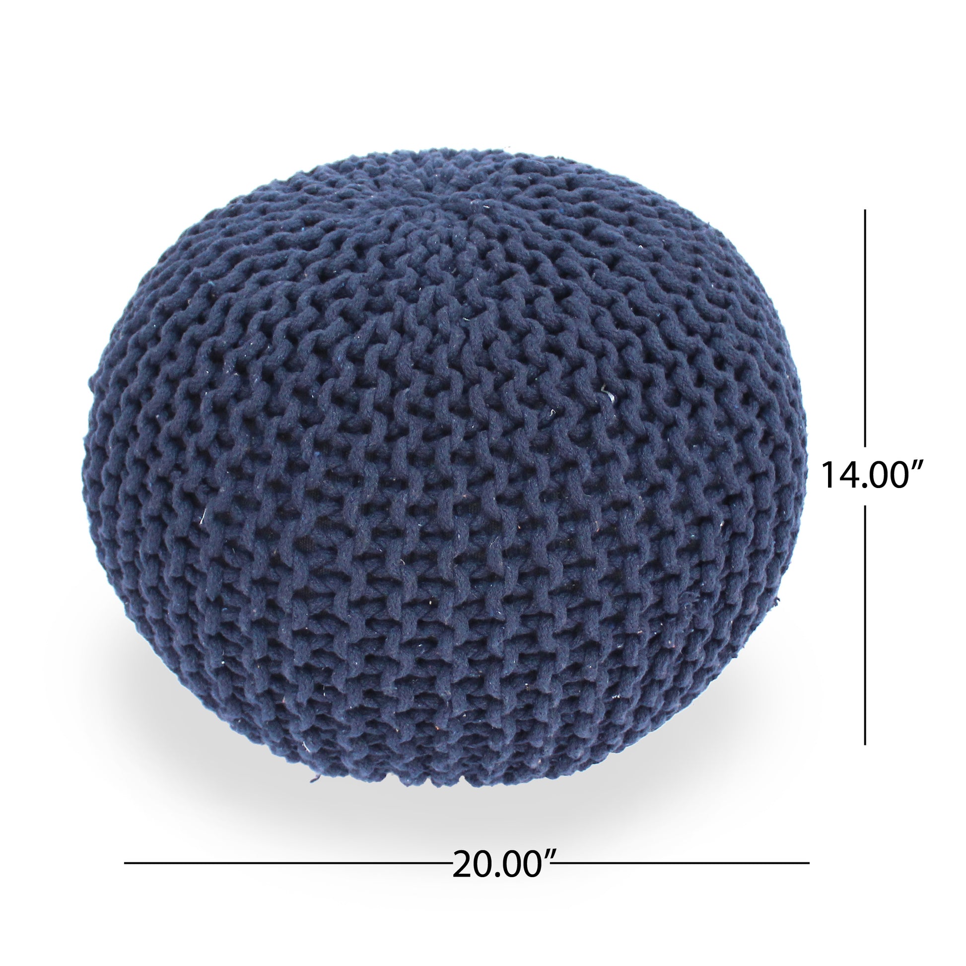 Live boldly with the ideal statement piece by giving your home this bestseller knitted pouf that offers both comfort and style to any room. The compact pumpkin shape and classic cable knit makes this the perfect seating for children in a nursery or a colorful footrest in a stylish living room. HANDCRAFTED DESIGN: This GDF Studio Indoor Pouf is expertly designed and handcrafted with artisan expertise. KNIT WEAVE: Our pouf brings a charming coziness to your home with its delightful knit weave cover. Not only does this give your home a snug look but it also brings a splash of texture to your decor. DIMENSIONS: Choose an accessory that is the perfect size for you and your furniture. This pouf is 20.00” W x 20.00” D x 14.00” H. NO ASSEMBLY: This pouf comes ready to use straight out of the box. No assembly is required. *- Includes: One (1) Pouf *- Material: Cotton *- Filling Material: Polystyrene Beads *- Color: Aqua *- Hand-Crafted Details *- No Assembly Required *- Dimensions: 20.00 inches deep x 20.00 inches wide x 14.00 inches high