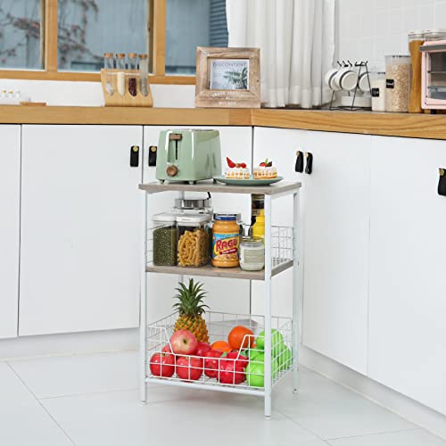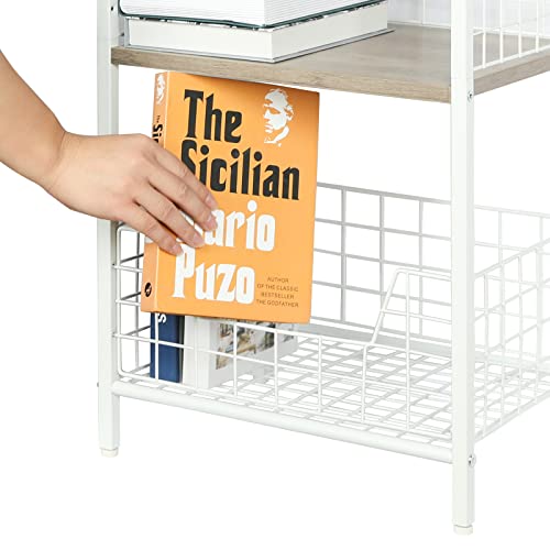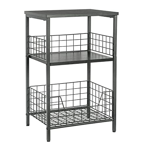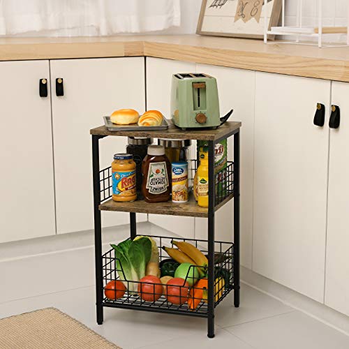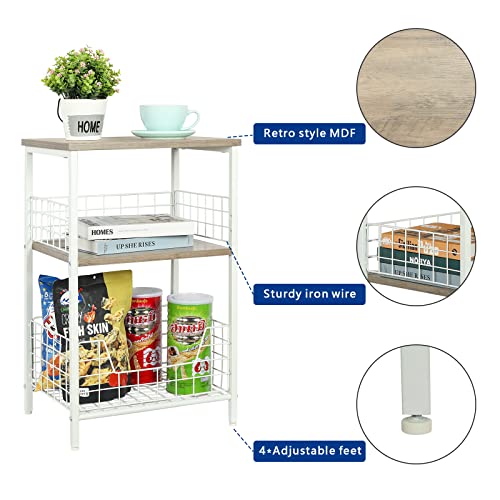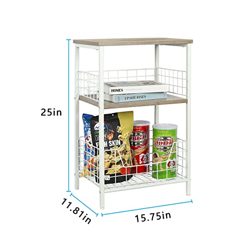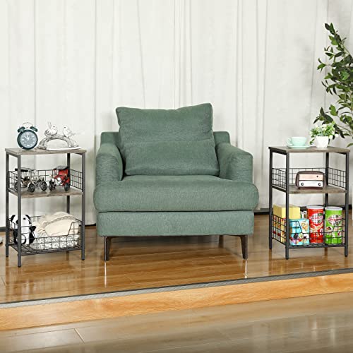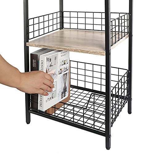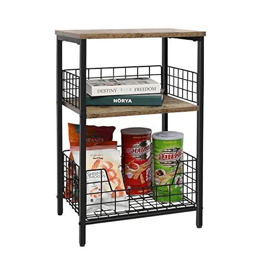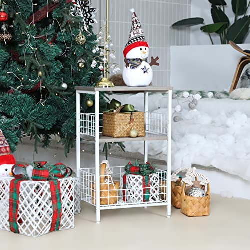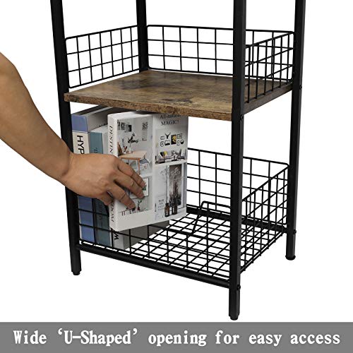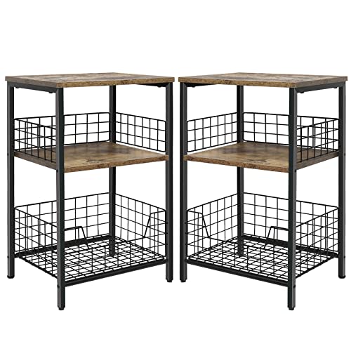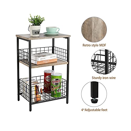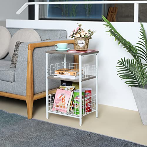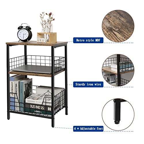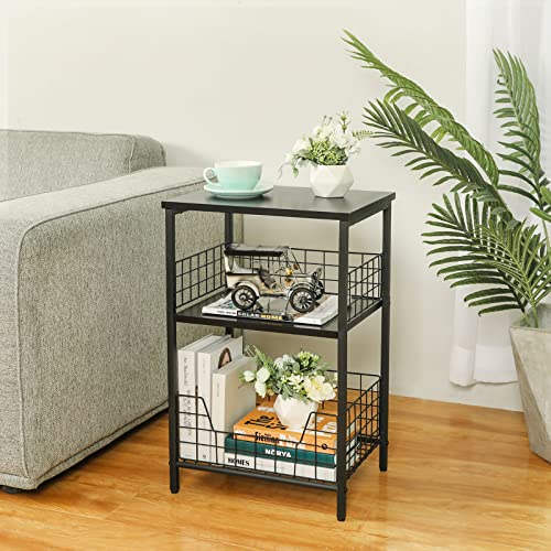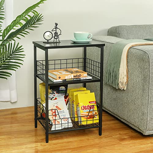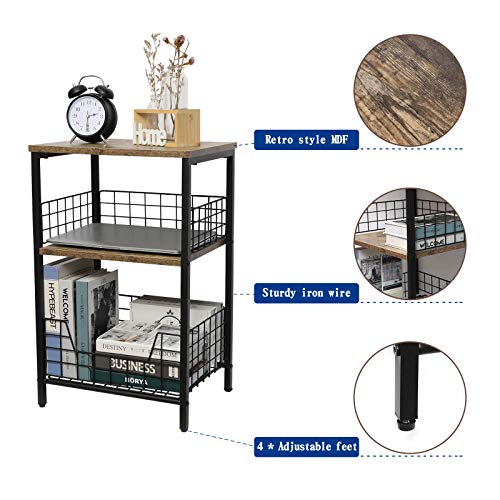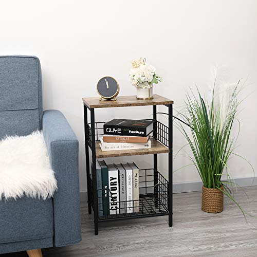 - 【More Practical】3-Tier end table for additional storage meet all of your different needs.The top and middle open smooth shelf gives sufficient storage place for storing and displaying. And the bottom wide U-shape iron wire basket for easy access and can storage snacks,cans or other stuff you want to put inside