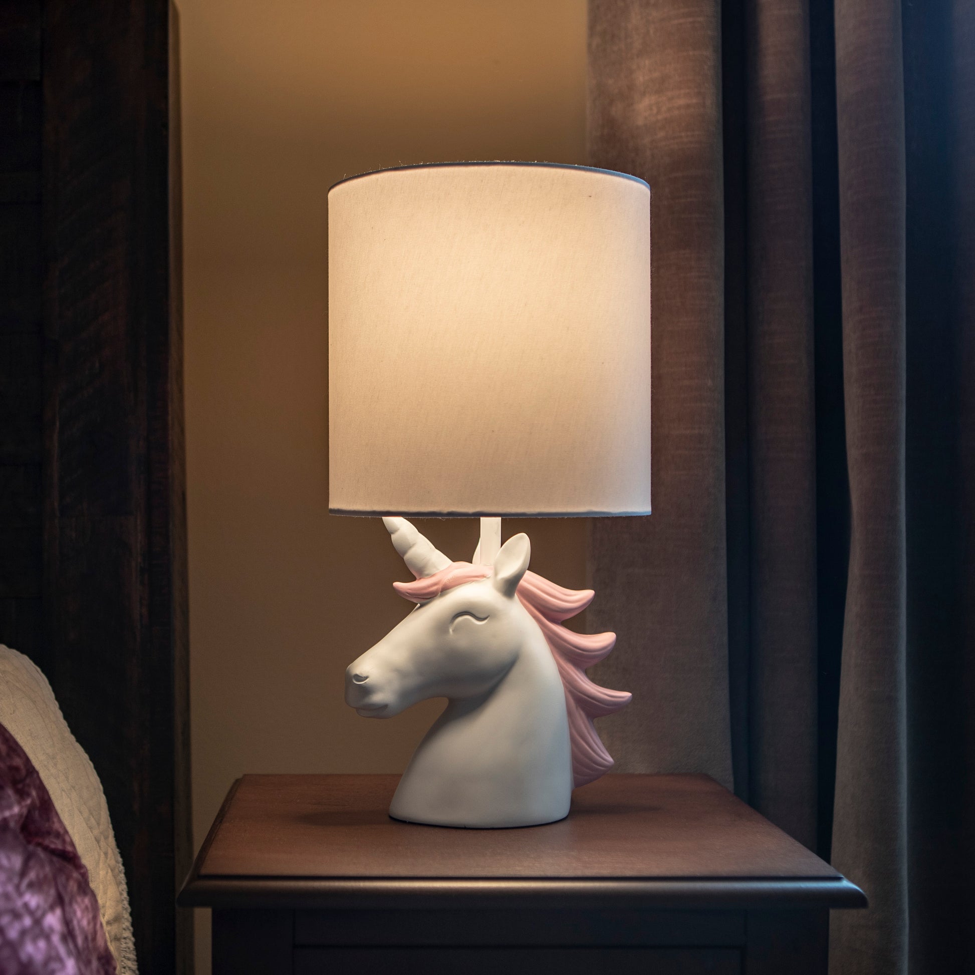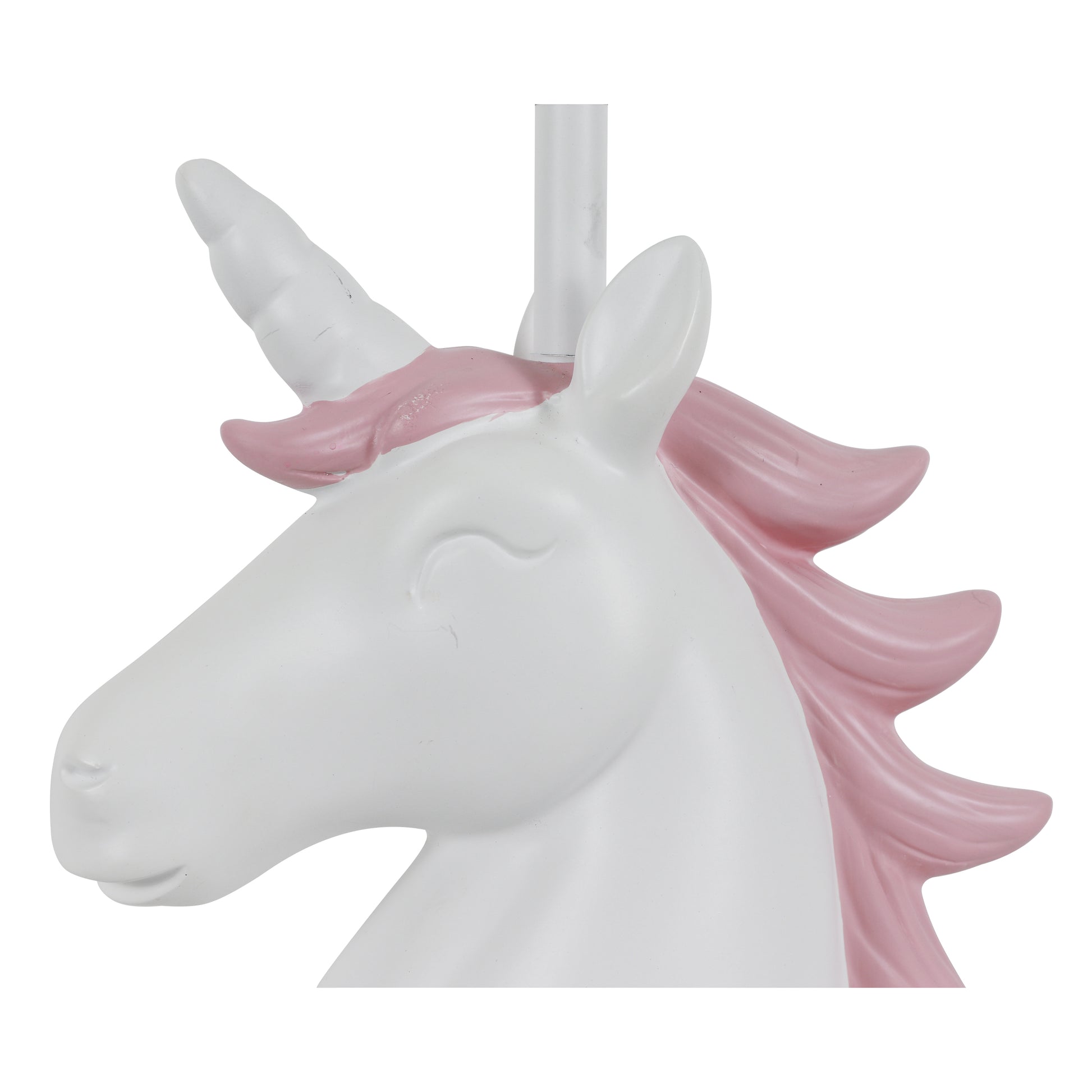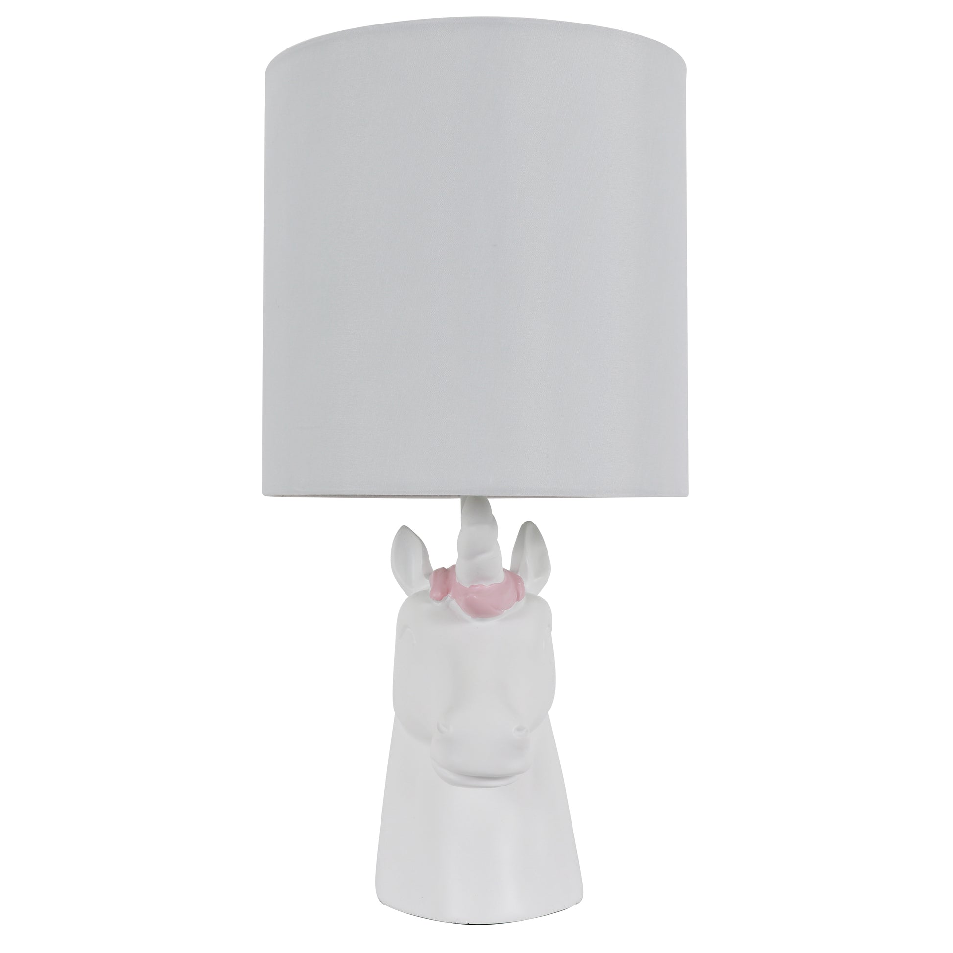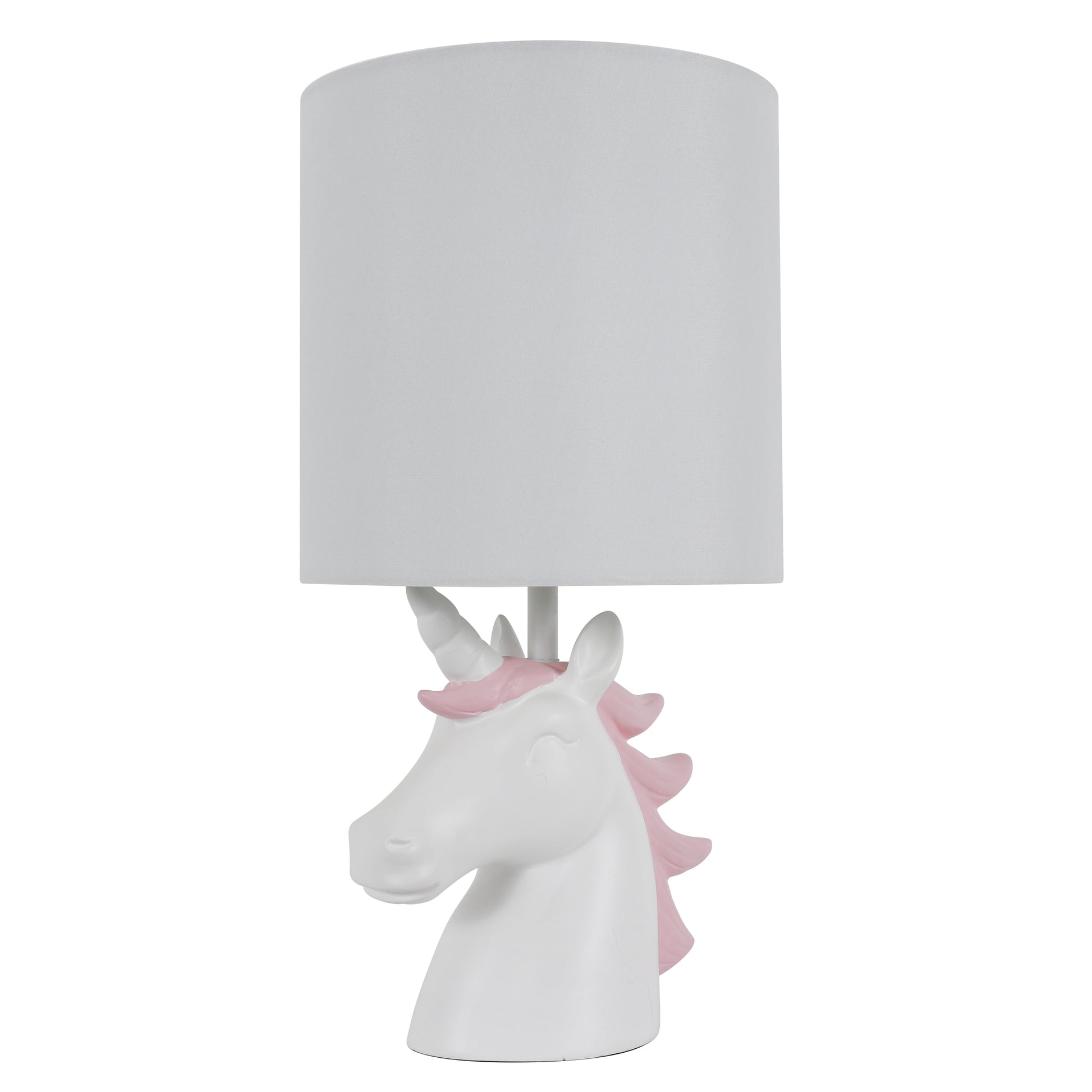 Let the your Table Lamp add a bit of whimsical flair to your space with a hint of fun! The playful structure, blended with the soft colors, allow you the opportunity to experiment with different decor themes and styles, whether it's in your child's bedroom or play area. The Your Zone Unicorn Poly Grab & Go Table Lamp will keep your space fresh and updated; with the structure of the unicorn's mane giving off the illusion of it blowing in the wind. The possibilities are endless and you are sure to find a space among your child's fun-filled fantasy-driven decor! Constructed of poly and measures: 15.5"H x 8"W x 8"D. Your Zone Kids Unicorn Poly Accent Table Lamp, White Finish *- Constructed of polyresin *- The unicorn's white finish with pink flowing mane creates a soft touch to an otherwise bold and boisterous table lamp *- Features an on/off rotary switch for easy functionality *- Requires (1) 60 watt bulb, not included *- Measures: 15.5" x 8" x 8"