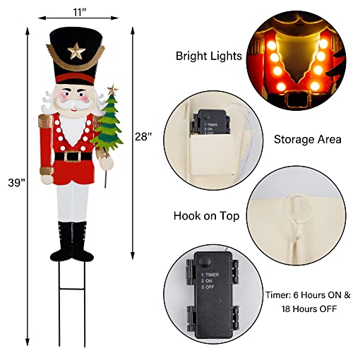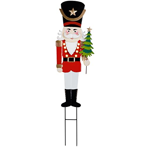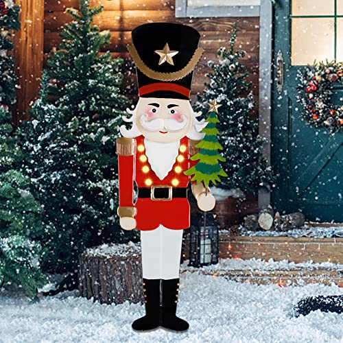 - Nutcracker Garden Stake: The traditional metal soldier nutcracker holding a Christmas tree on his hand, which will add a nice touch to your holiday outdoor decor, mesh well with your other Christmas decorations.